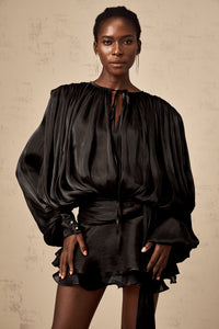 Eugénie Siyah Tam Pilili Fırfırlı Mini Elbise