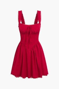 Dantel Detaylı Kare Yaka Kolsuz Plise Mini Elbise
