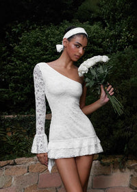 Tek Omuz Dantel Fırfırlı Mini Elbise