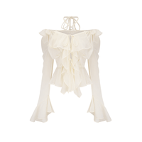 Fauve Beyaz Fırfırlı Straplez Uzun Kollu Bluz
