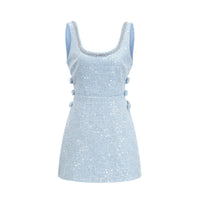 Manon Mavi Tüvit Pullu Mini Elbise