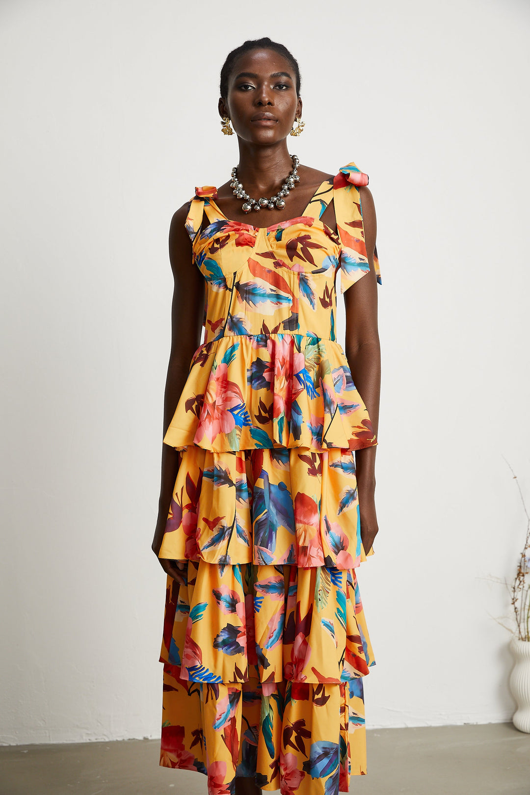Enora Çiçek Desenli Katmanlı Midi Elbise