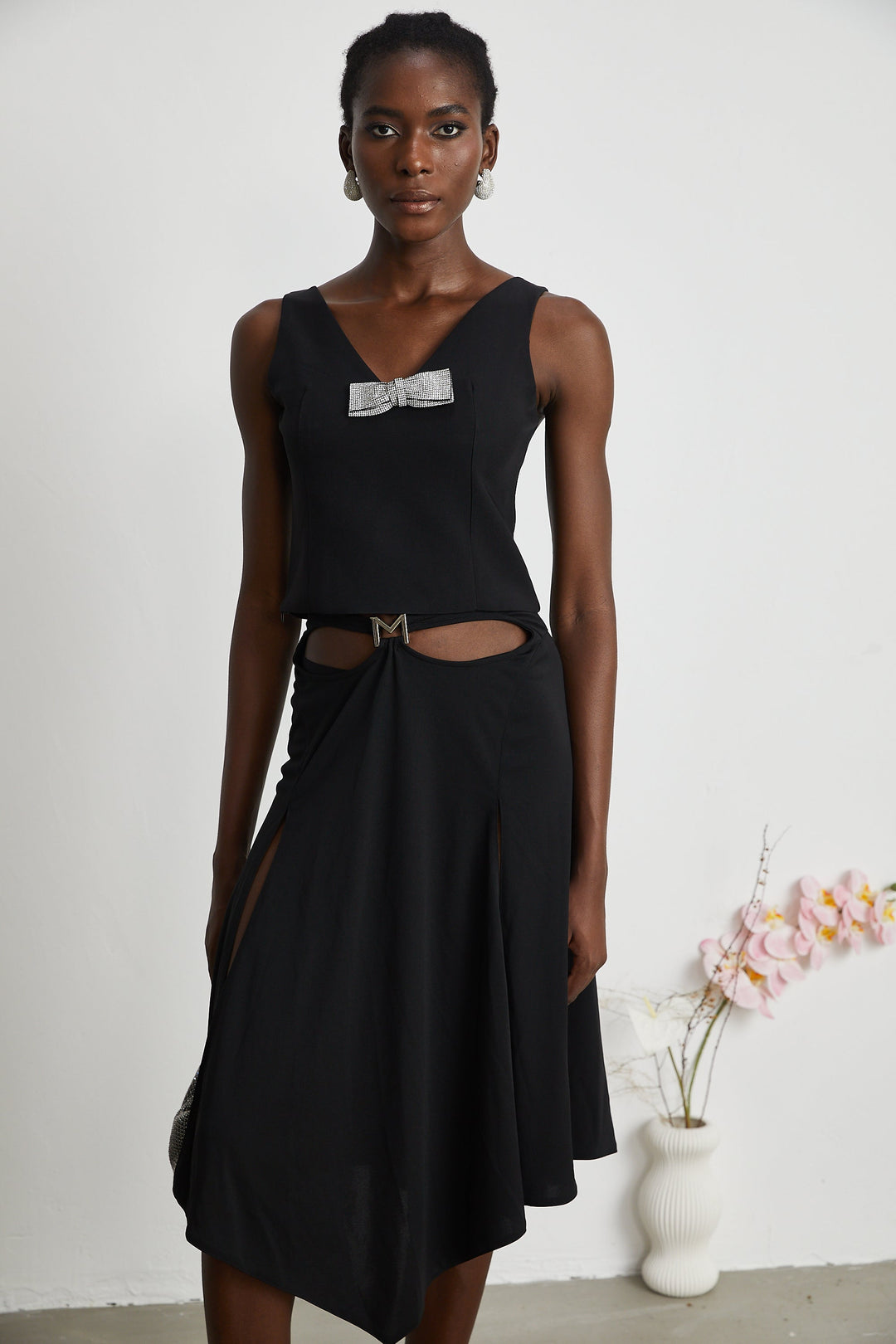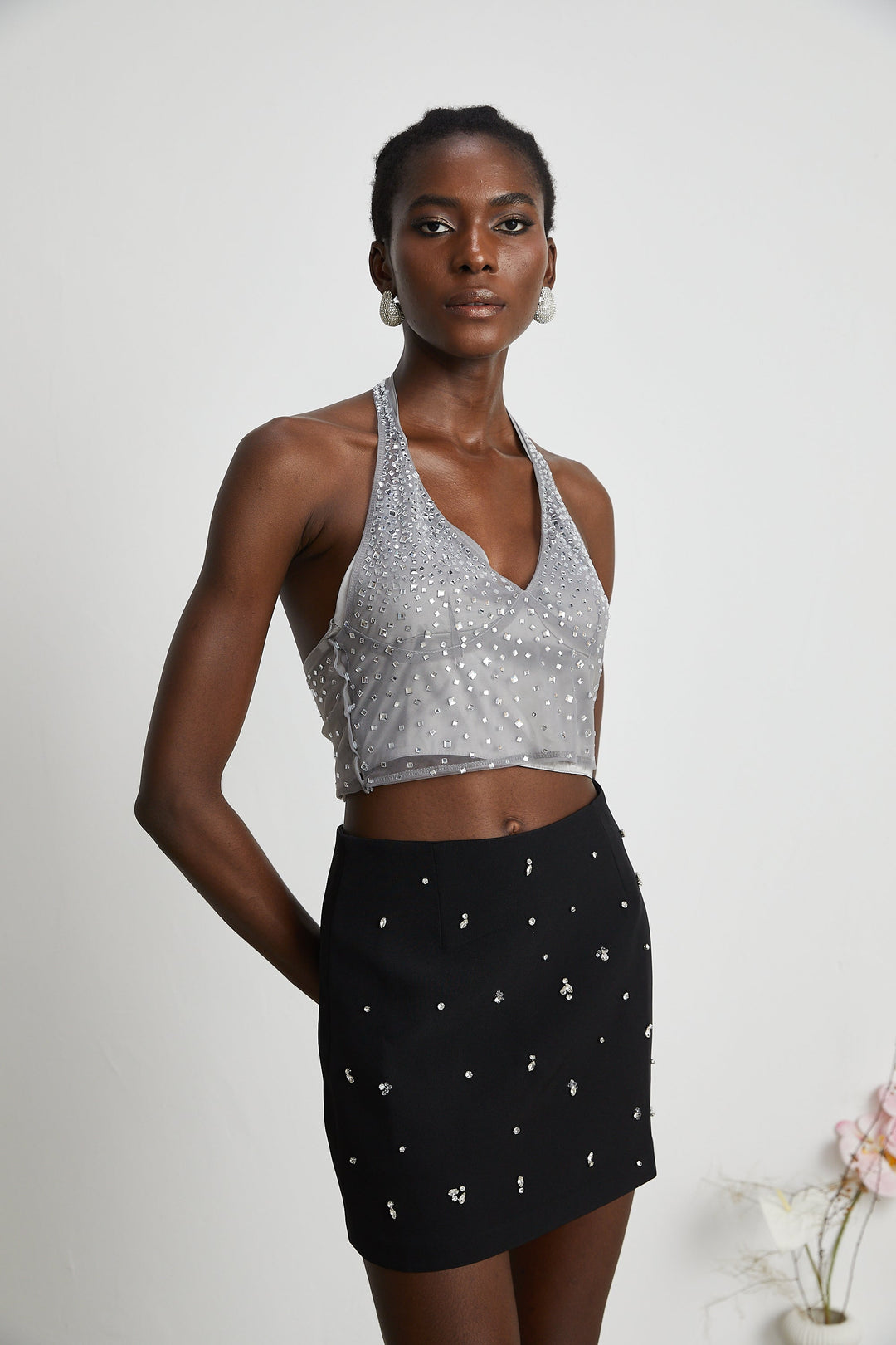 Pénélope Kristal İşlemeli A Kesim Mini Elbise