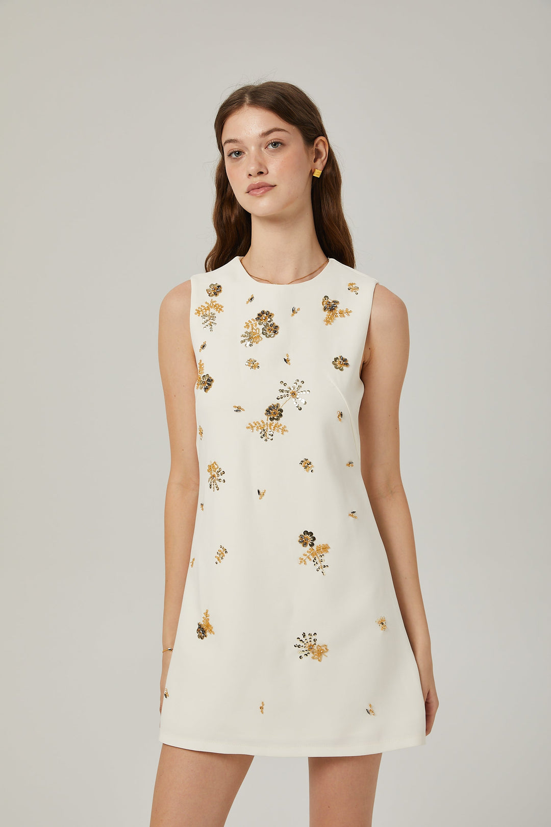 Emmanuela Çiçek İşlemeli Mini Elbise
