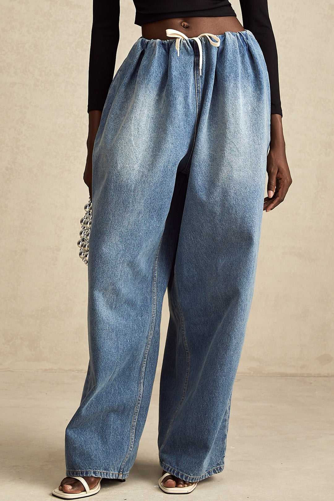 Eulalie Mavi Pilili Alçak Denim Pantolon