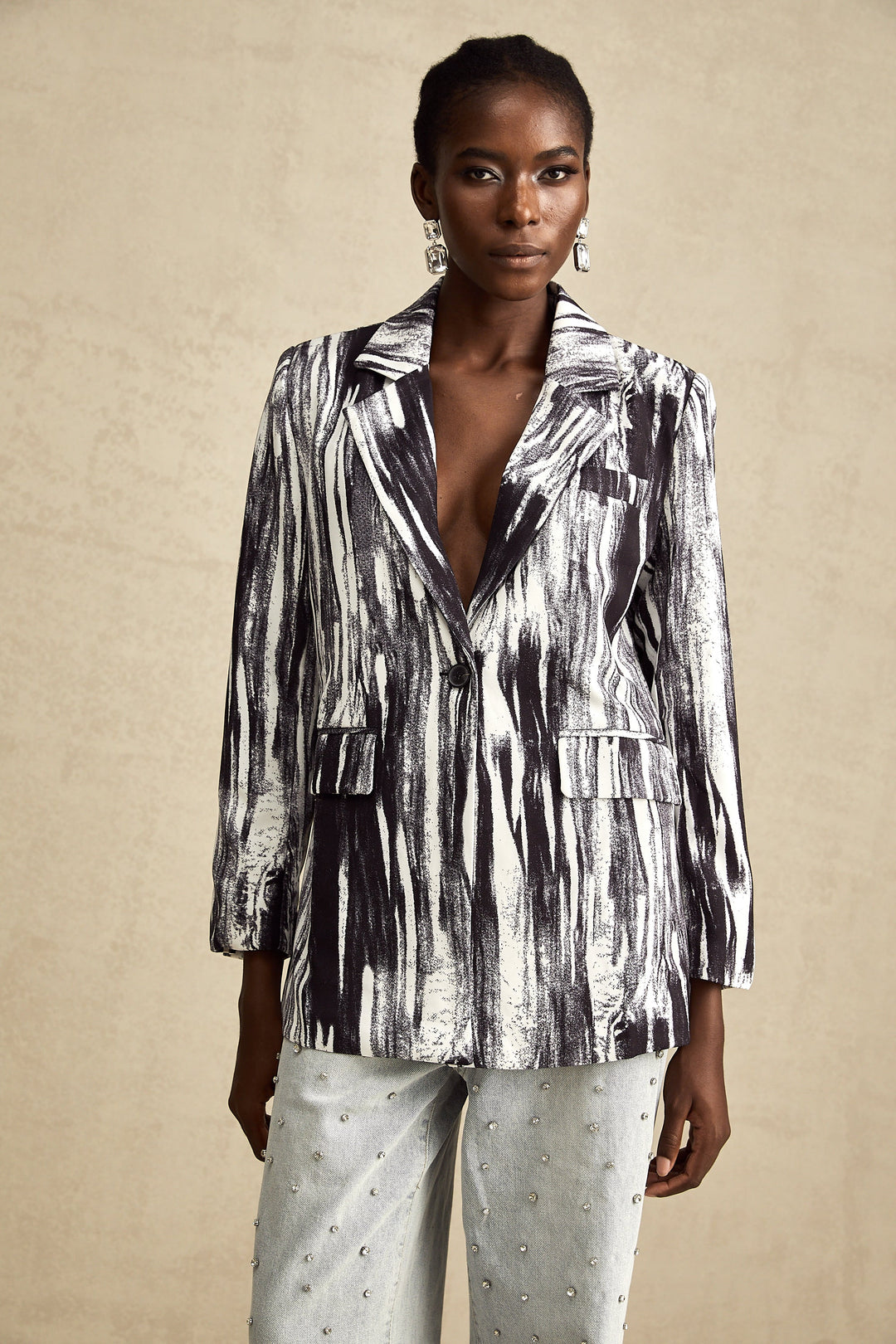Elise Siyah Graffiti Desenli Dokulu Ceket