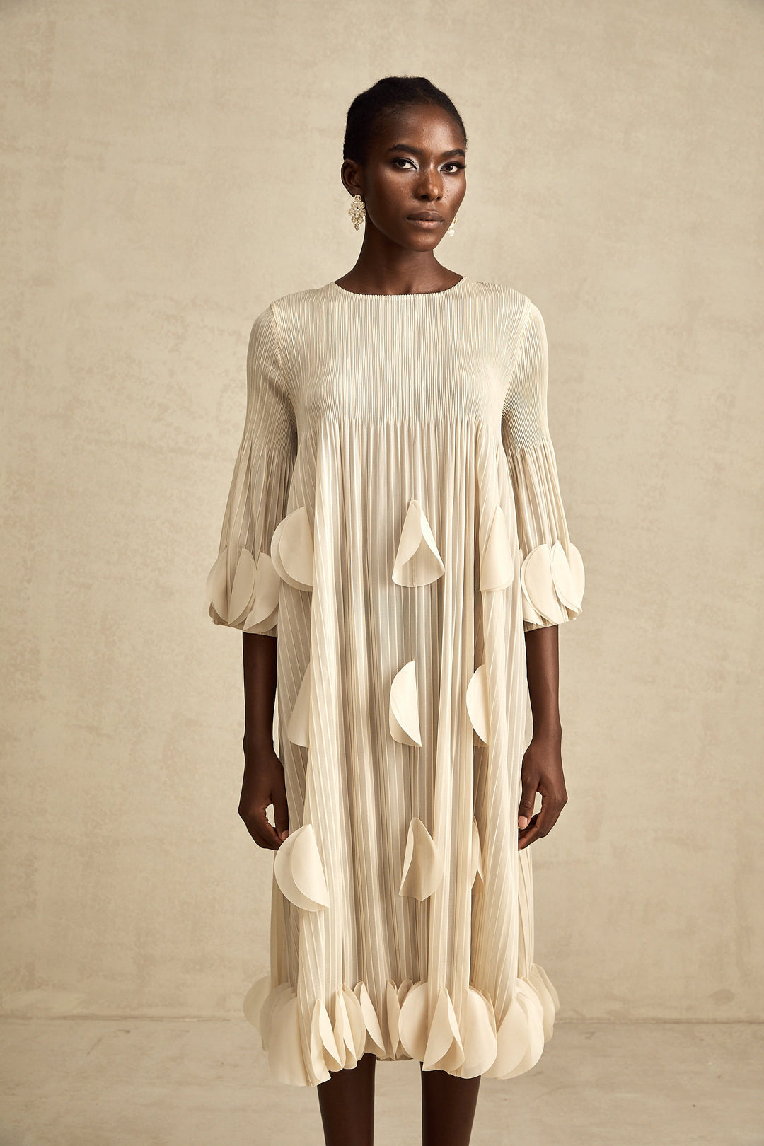 Alizée 3 Boyutlu Yaprak Detaylı Midi Elbise