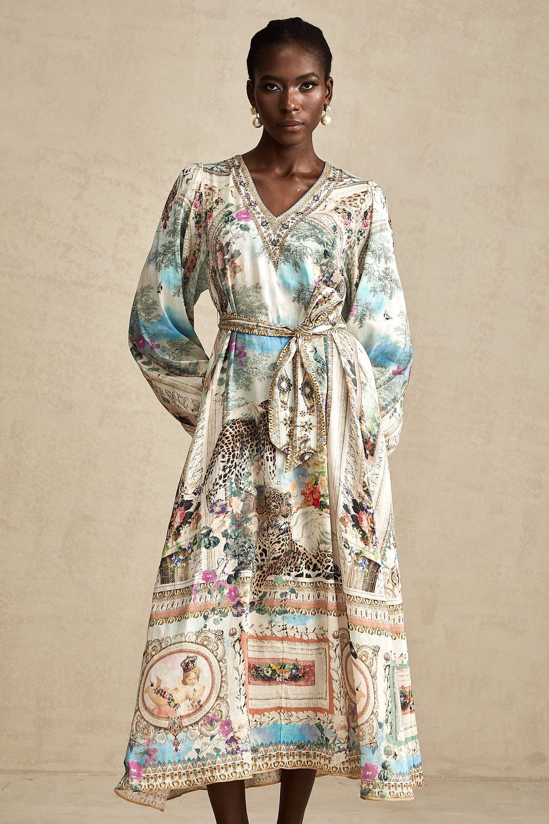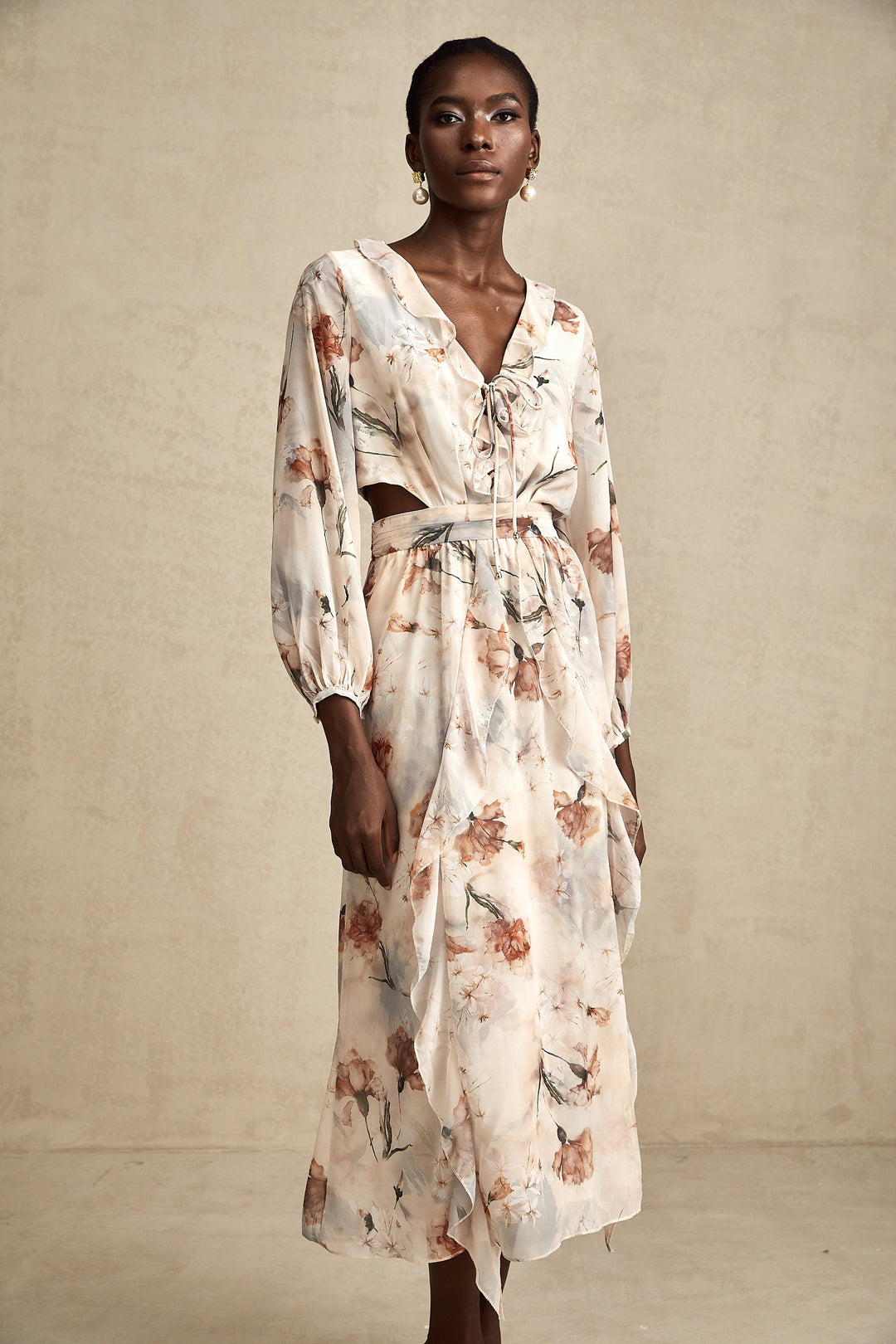 Bérengère Çiçek Desenli Açık Bel Midi Elbise