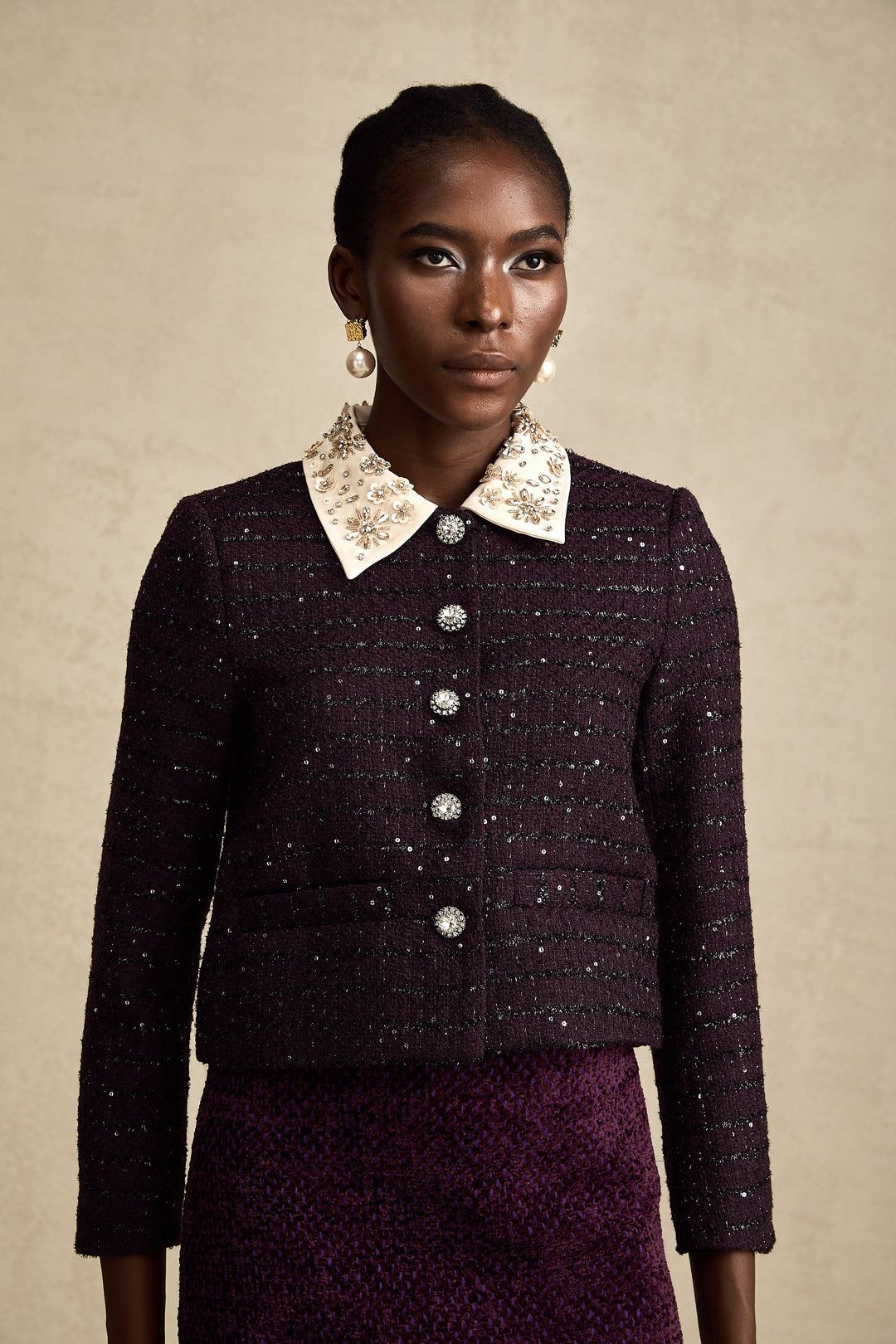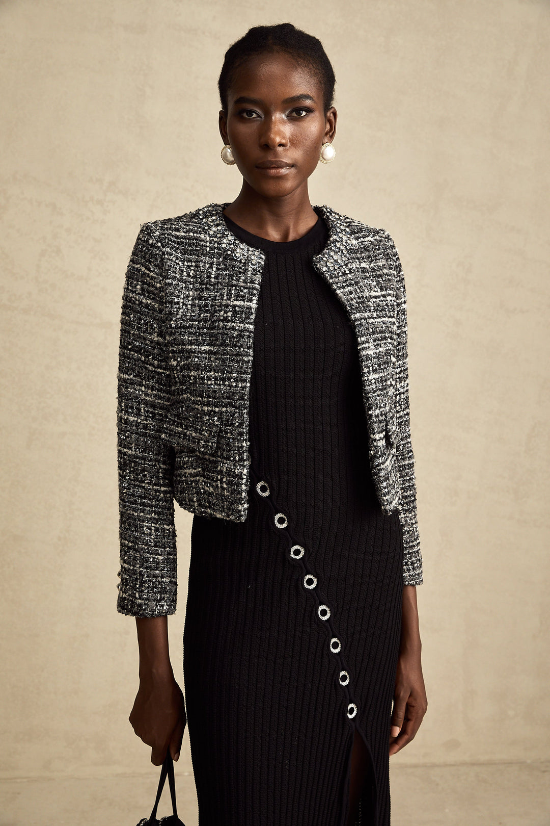 Julie Kontrast Renkli Simli Ceket Ve Etek Uyumlu Set