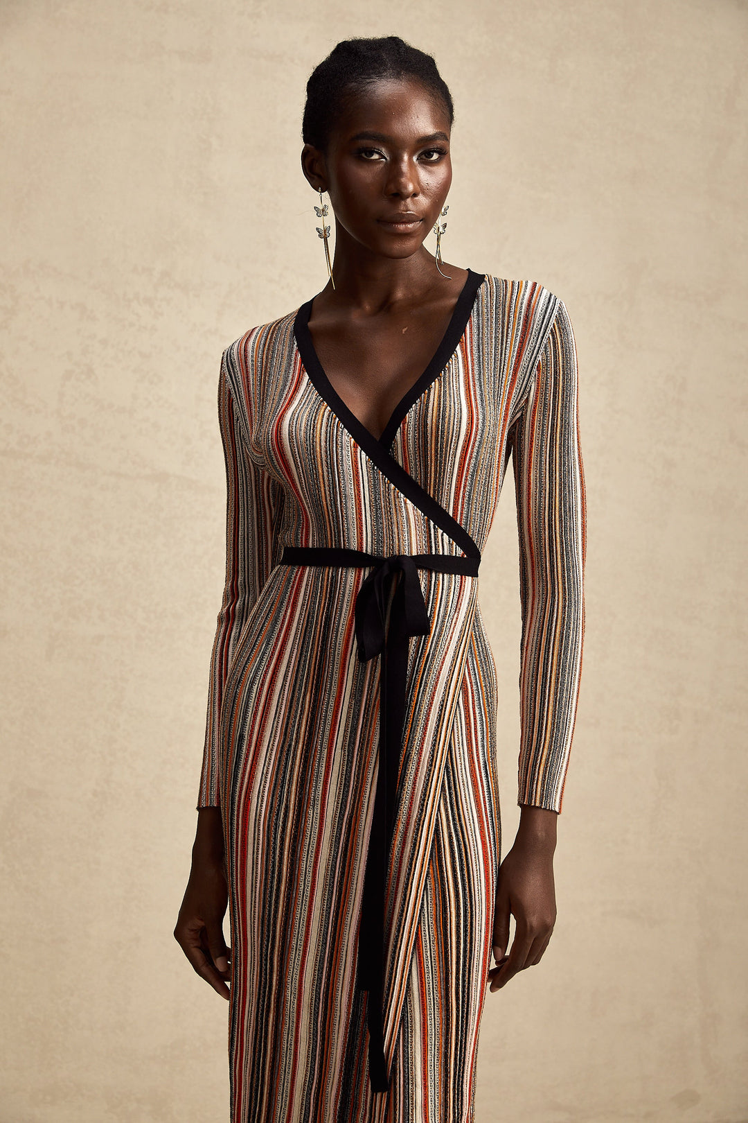 Adèle Şeritli Anvelop Tasarımlı Metalik Midi Elbise
