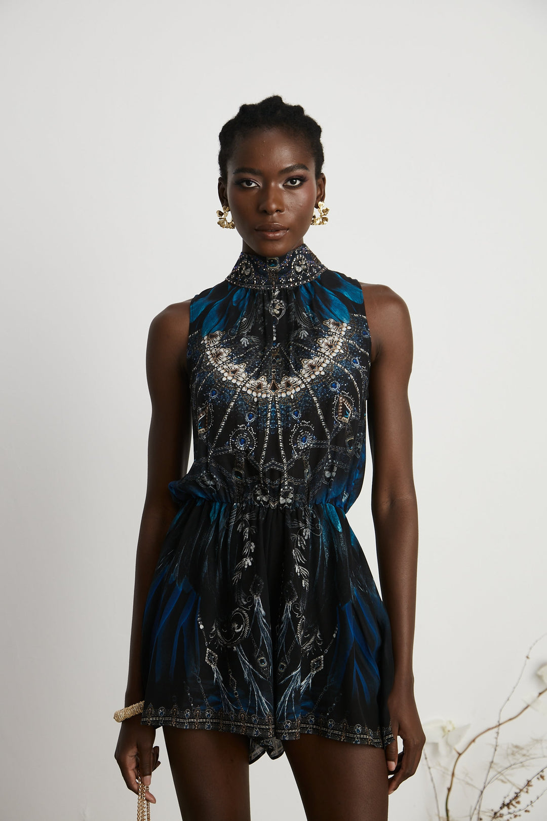 Émilie Siyah Kristal Süslemeli Kadife Mini Elbise