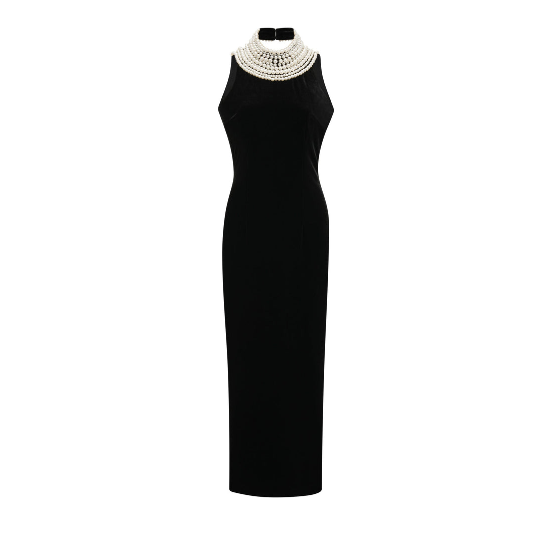 Maëlys Siyah Kristal Süslemeli Midi Elbise