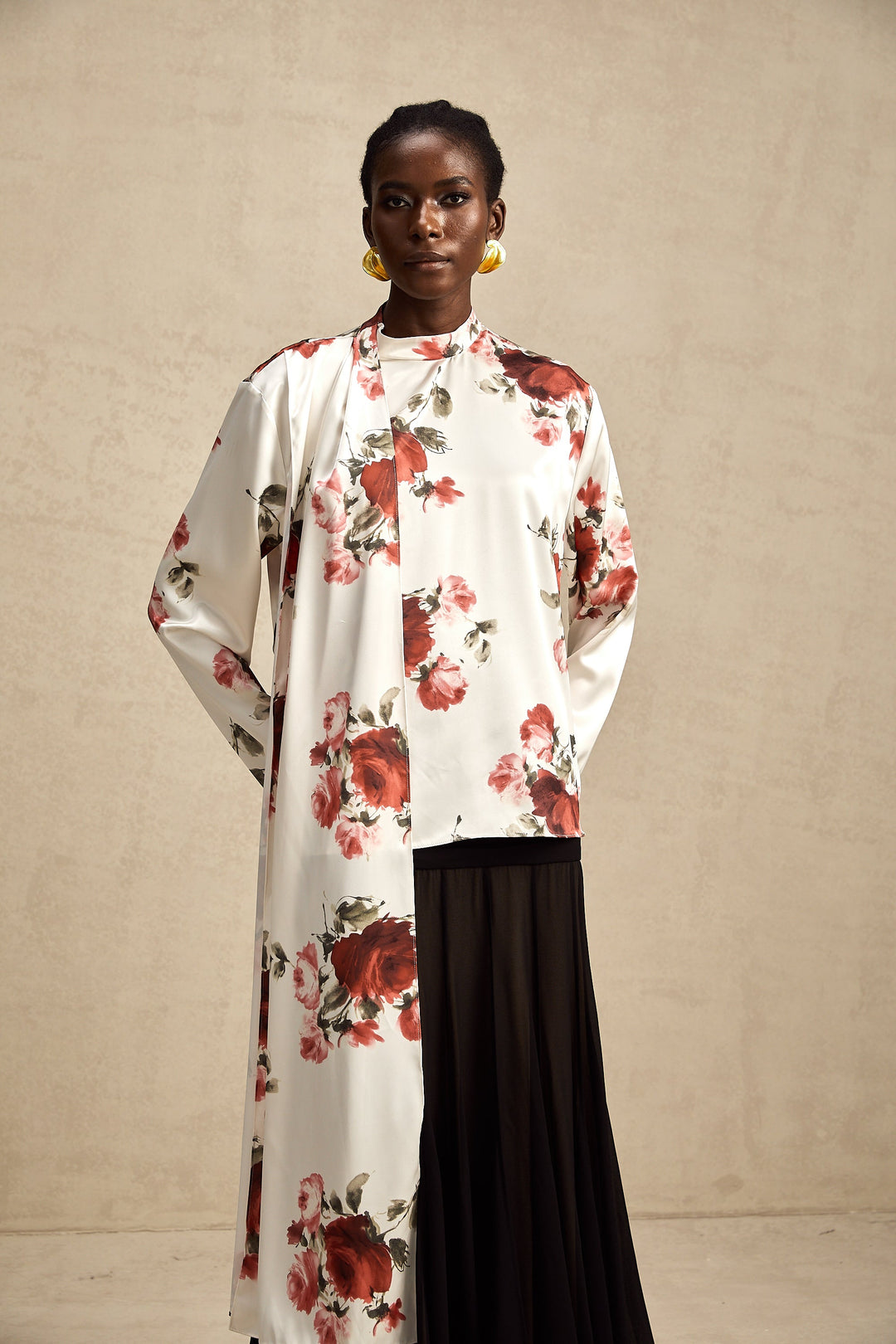 Louane Çiçek Desenli Eşarp Tasarımlı Saten Bluz