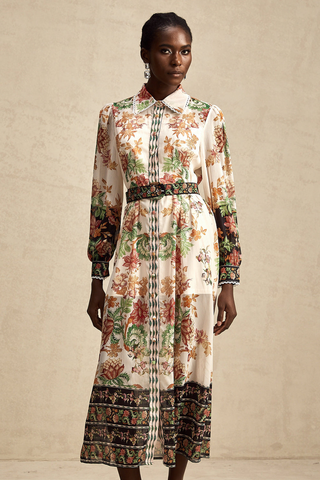 Fanny Çiçek Desenli Kuşaklı Şifon Midi Elbise