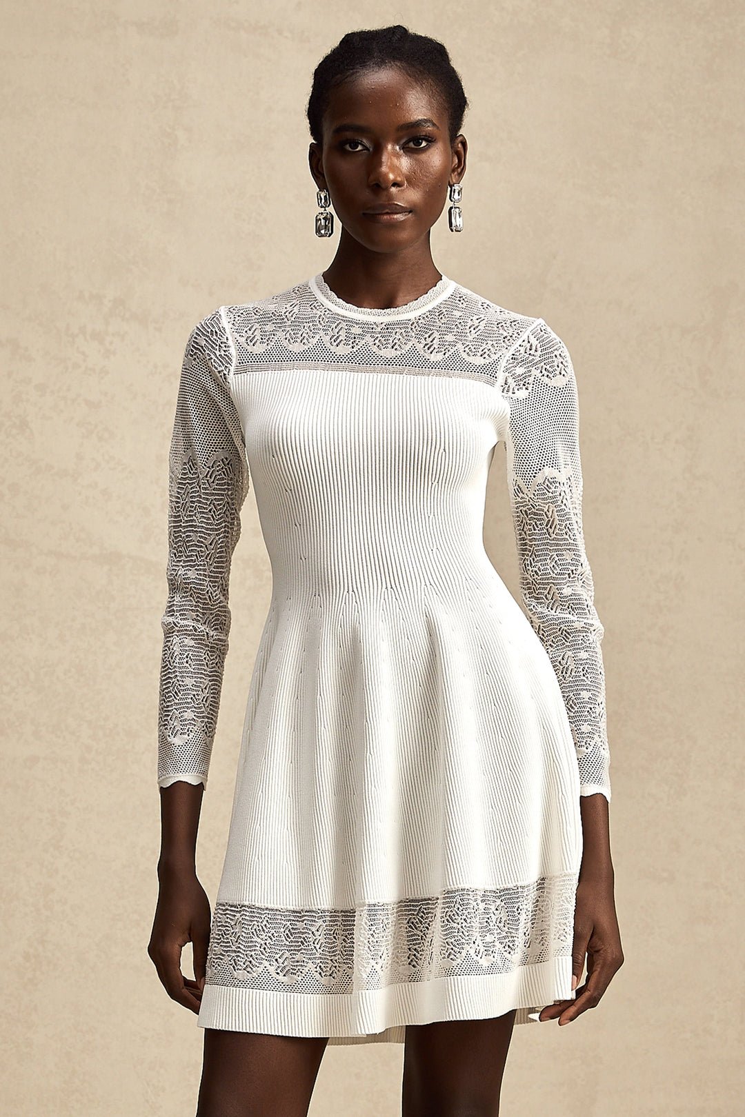Anastasie Beyaz Pointelle Panelli Örme Mini Elbise