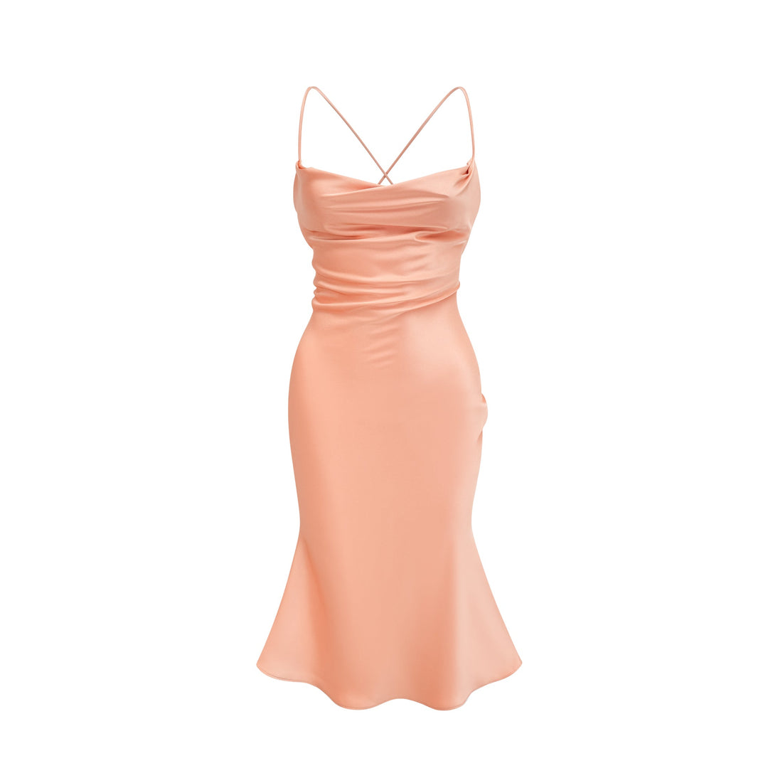 Céline Kırmızı Kroset Tarzı Saten Mini Elbise