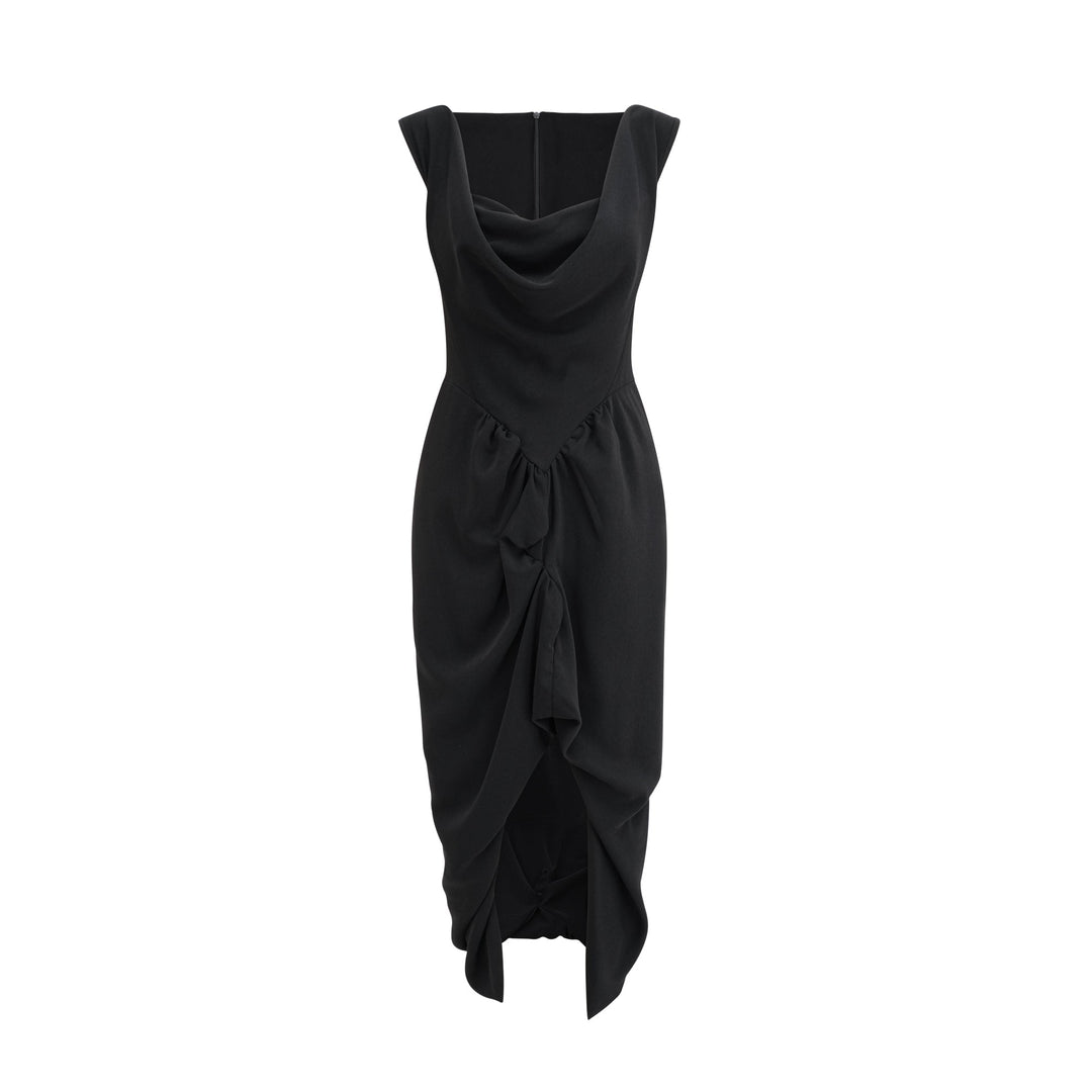 Michèle Siyah Fırfırlı Tren Tasarımlı Mini Elbise