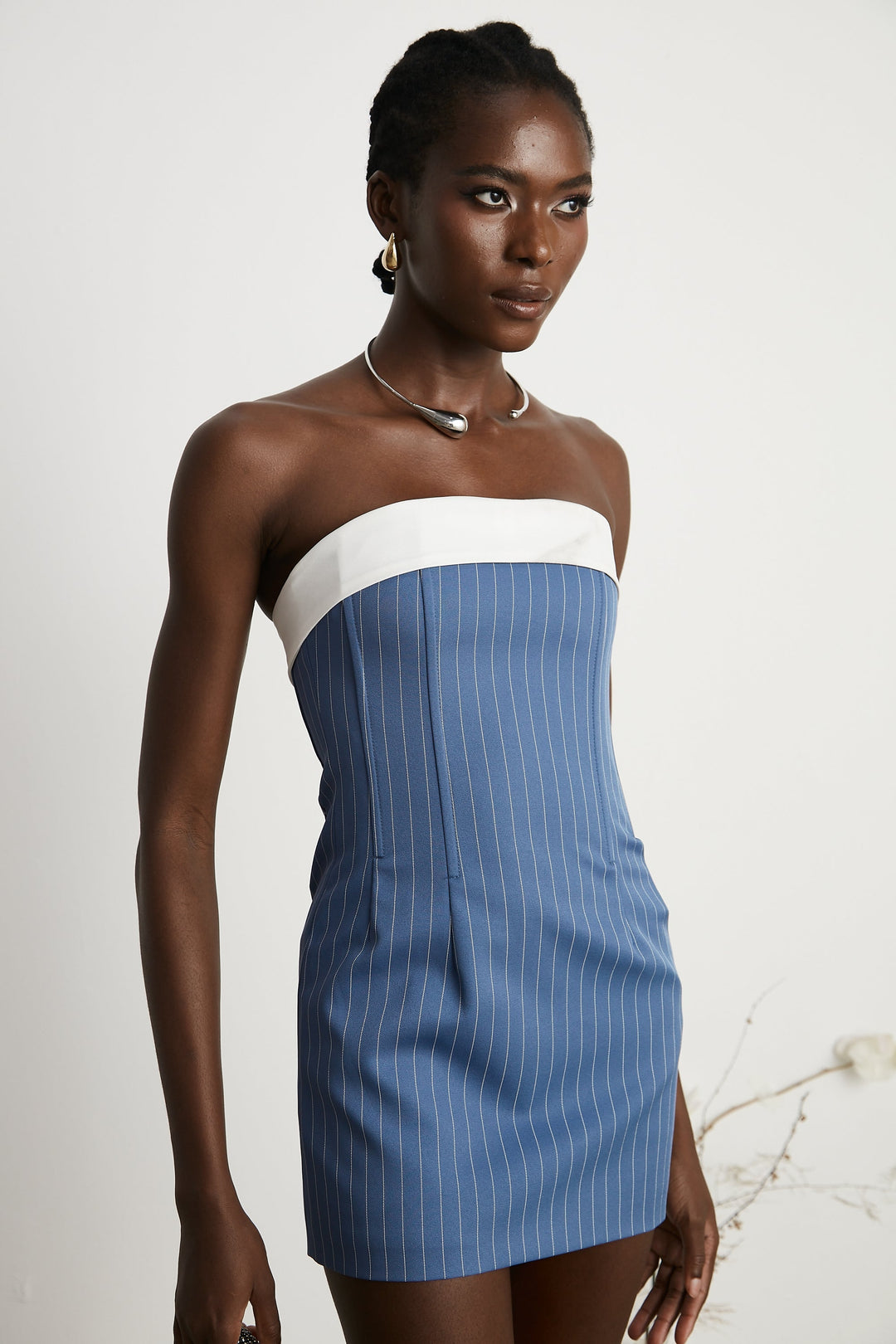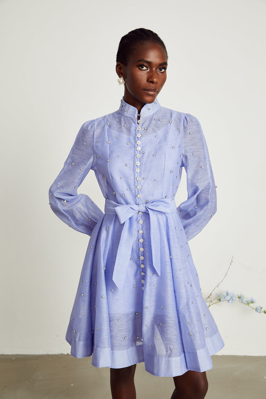 Christine Kristal Süslemeli Kuşaklı Mini Elbise