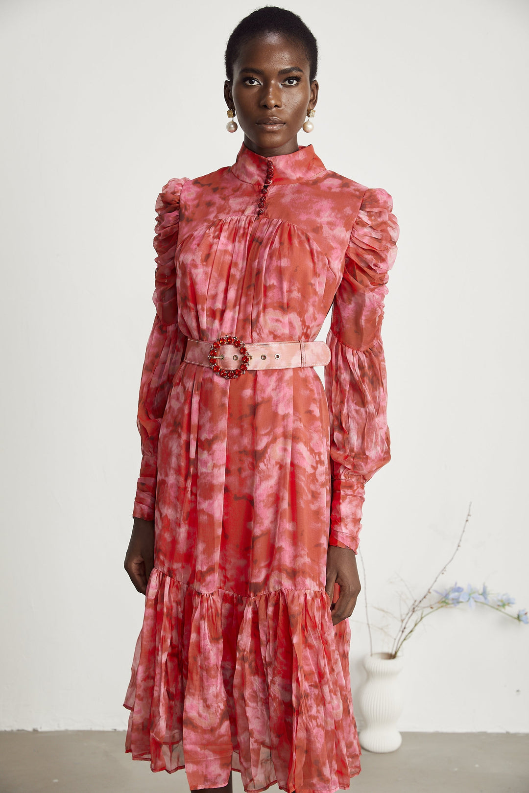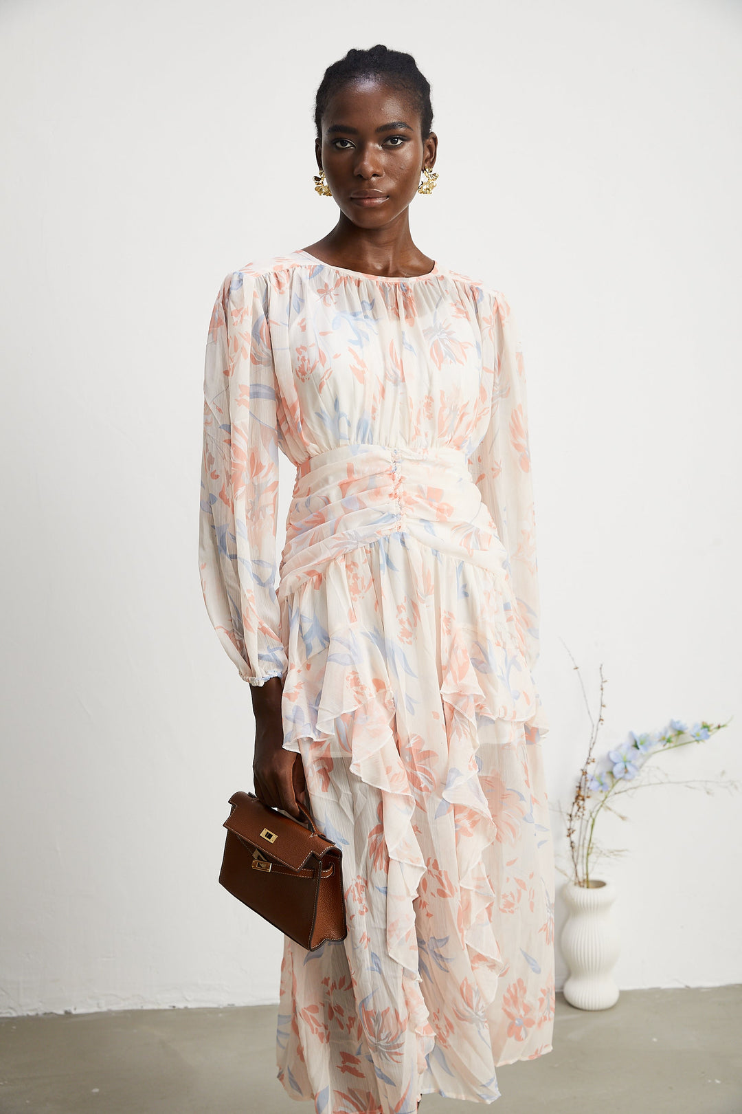 Noémie Fırfırlı Çiçek Desenli Midi Elbise