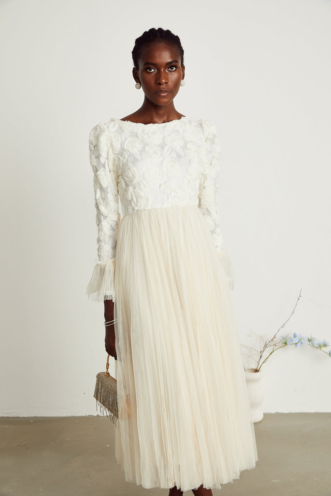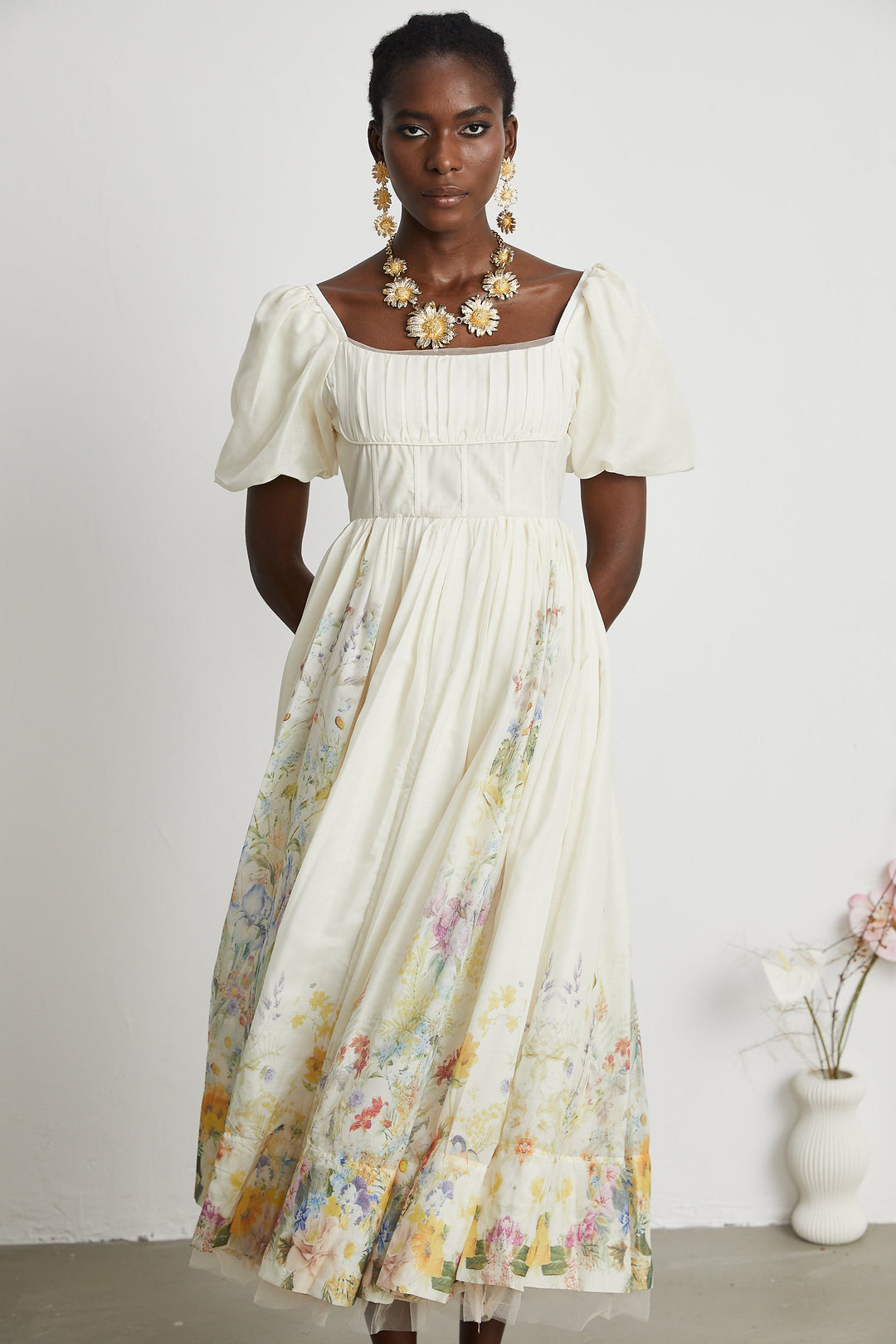 Carlotta Suni Çiçek Detaylı Midi Elbise