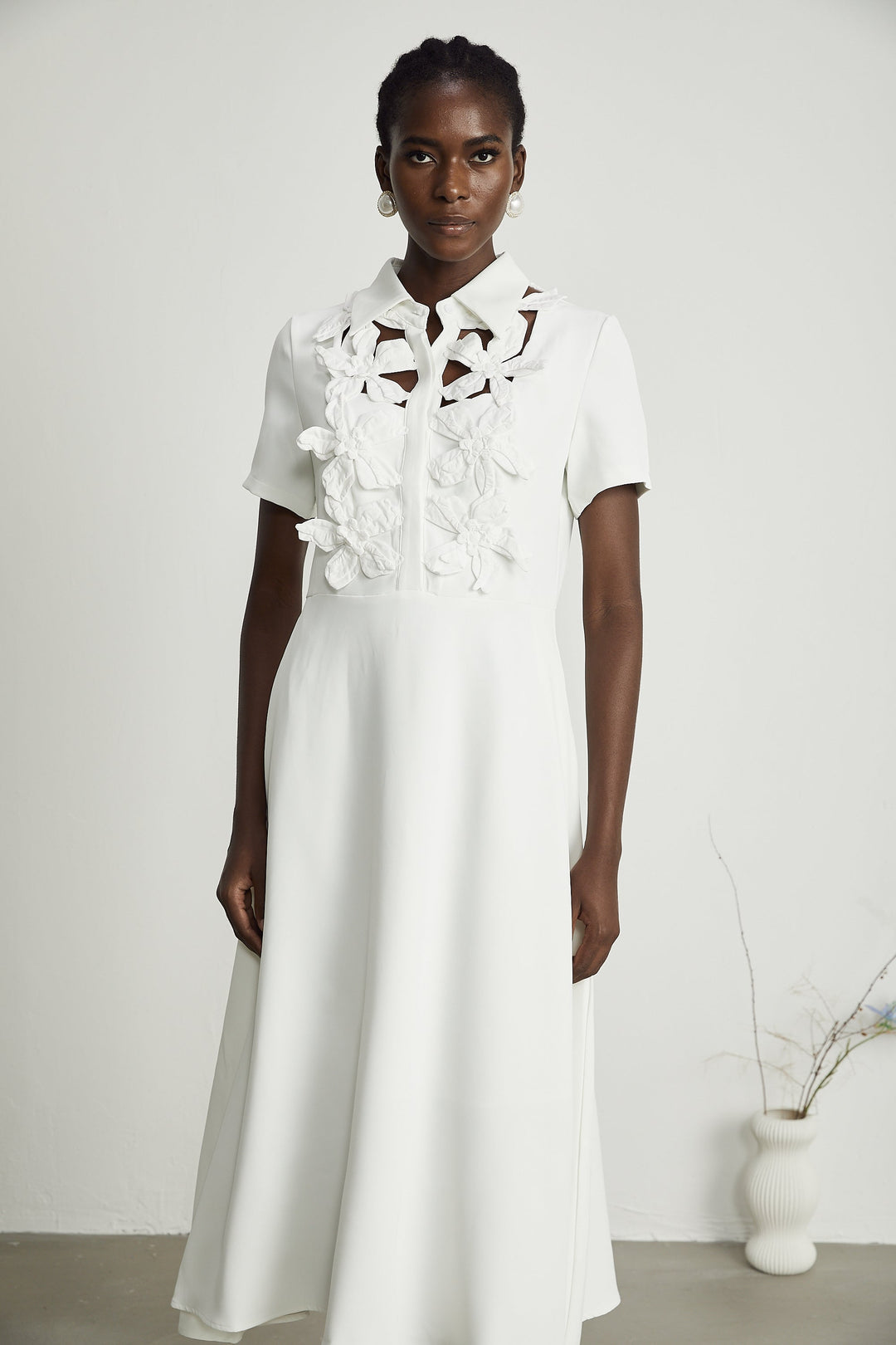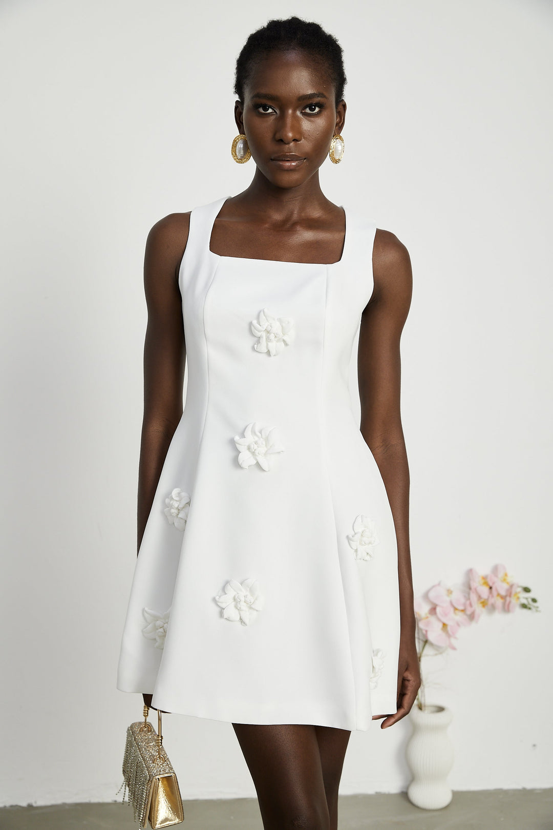 Vanessa Beyaz Suni Çiçek İşlemeli Mini Elbise