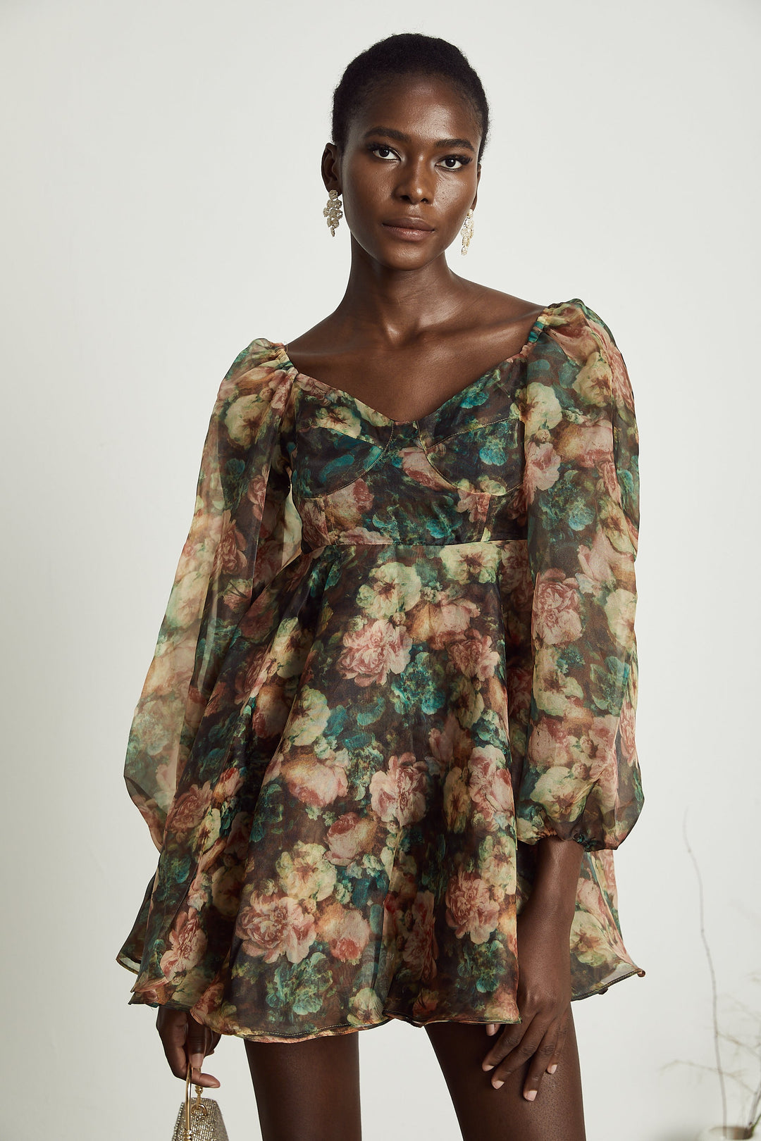 Esmer Suni Çiçekli Mini Elbise