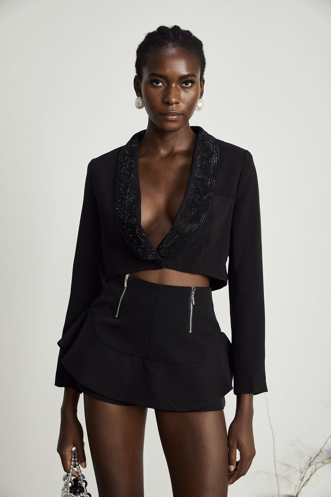 Suzanne Siyah Pilili Ceket Ve Pantolon Uyumlu Takım
