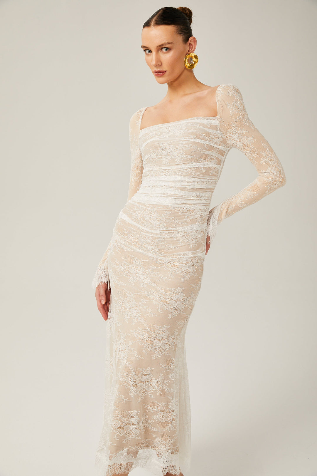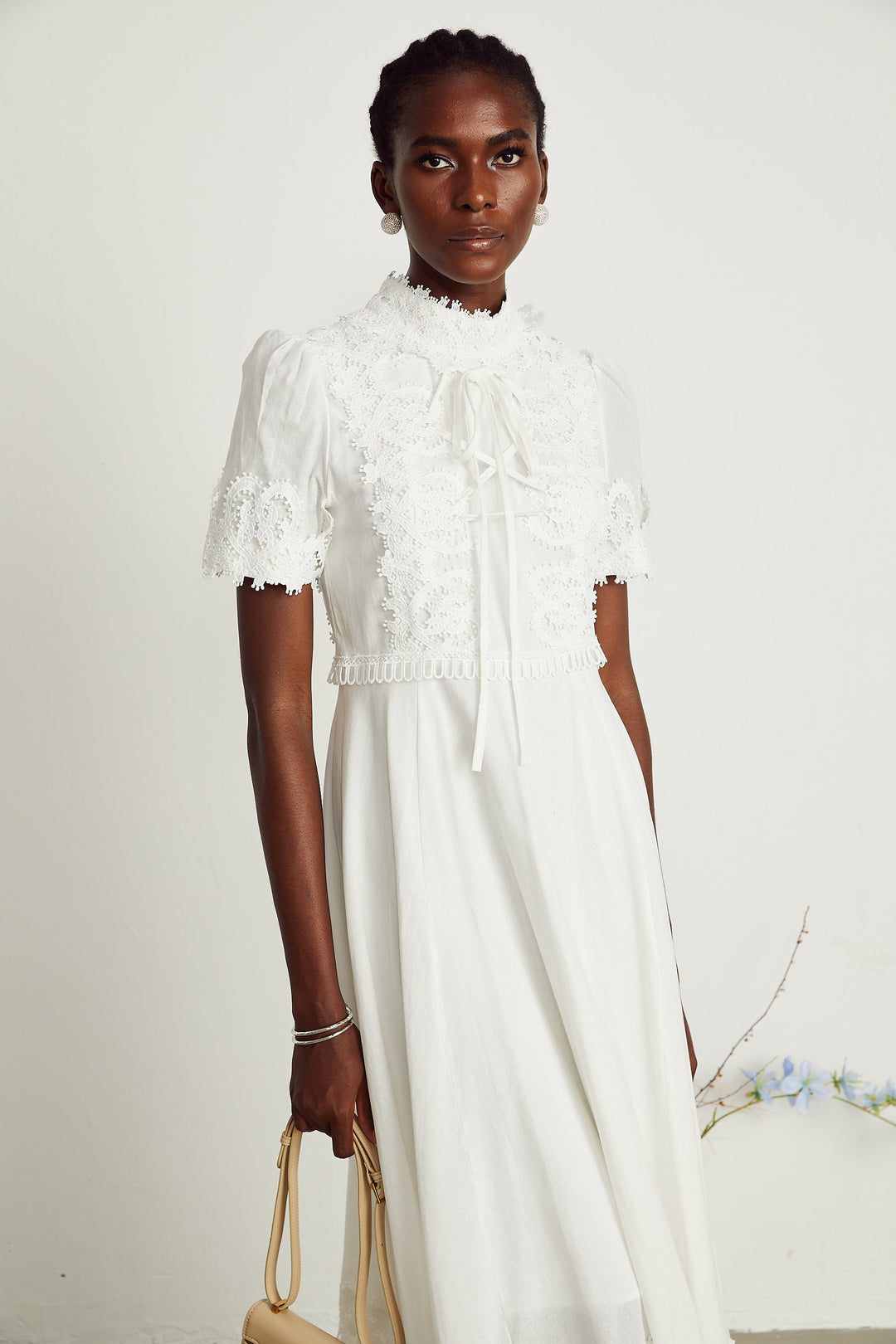 Laurianne Beyaz Midi Elbise