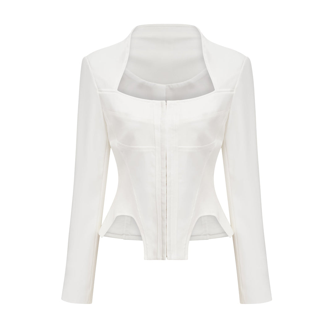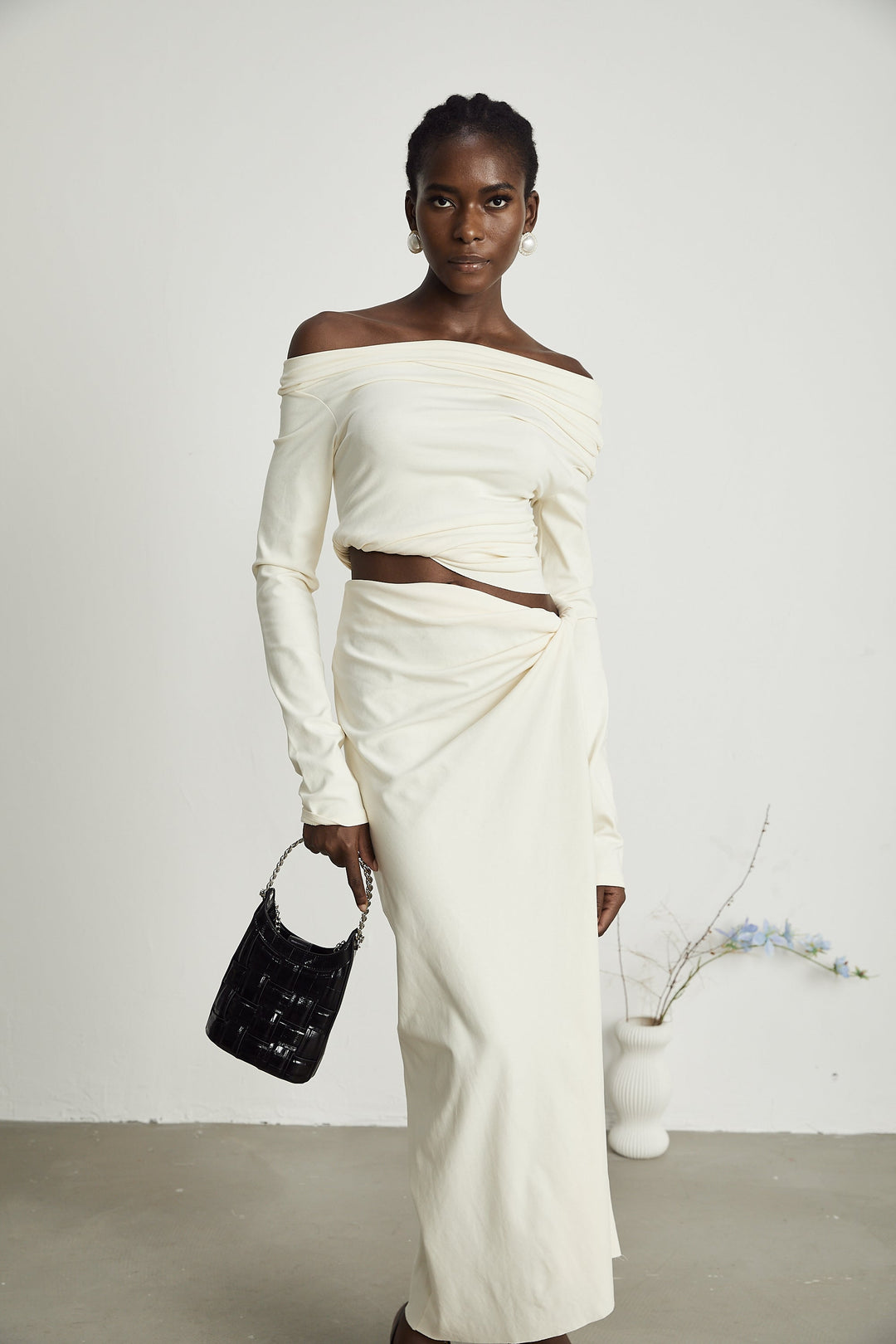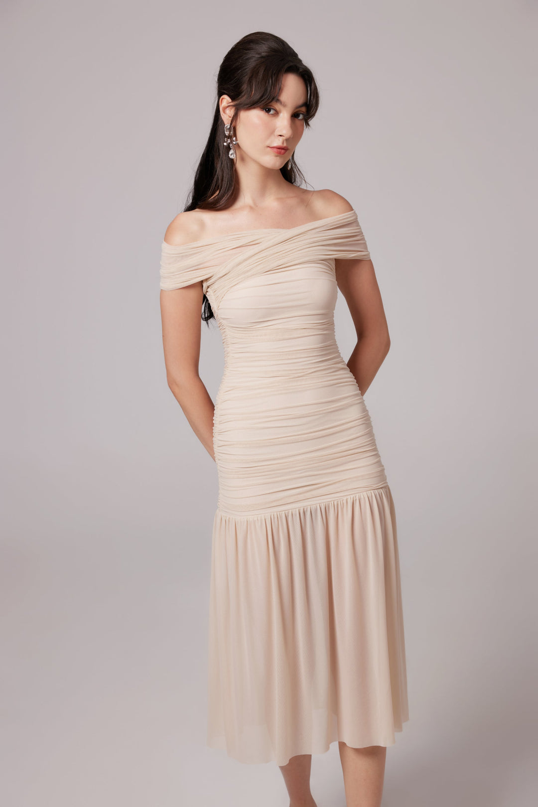 Katherine Beyaz, Omuzları Açık Korse Midi Elbise