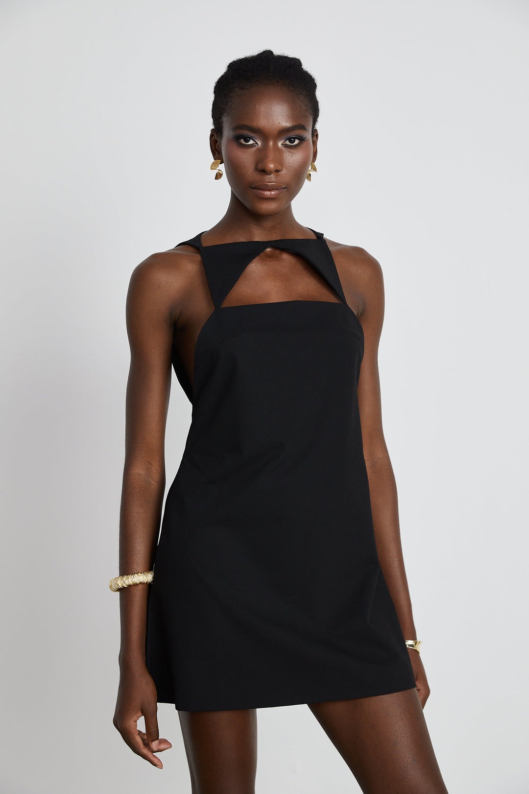 Audrey Siyah Pullu Panelli Tüvit Mini Elbise