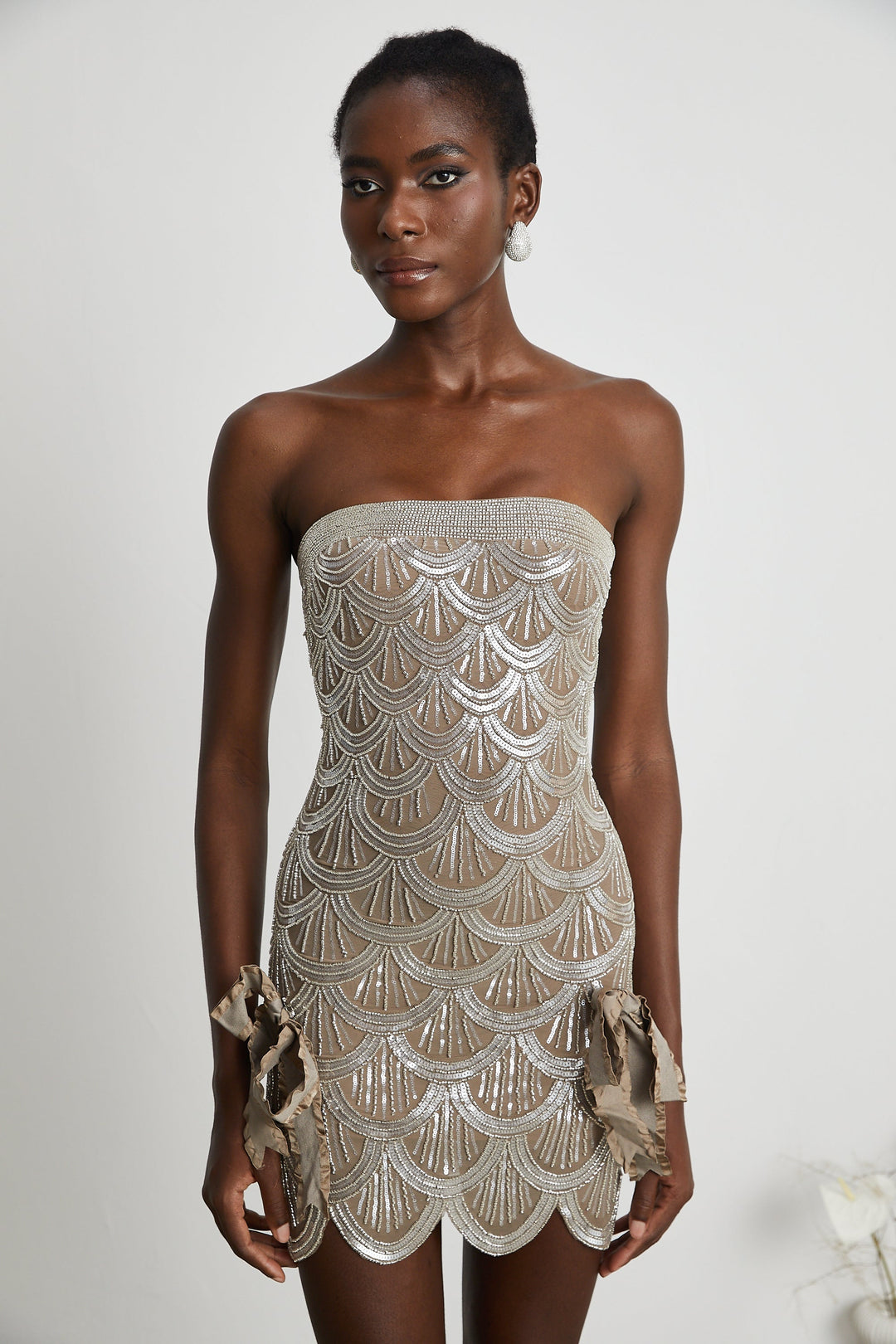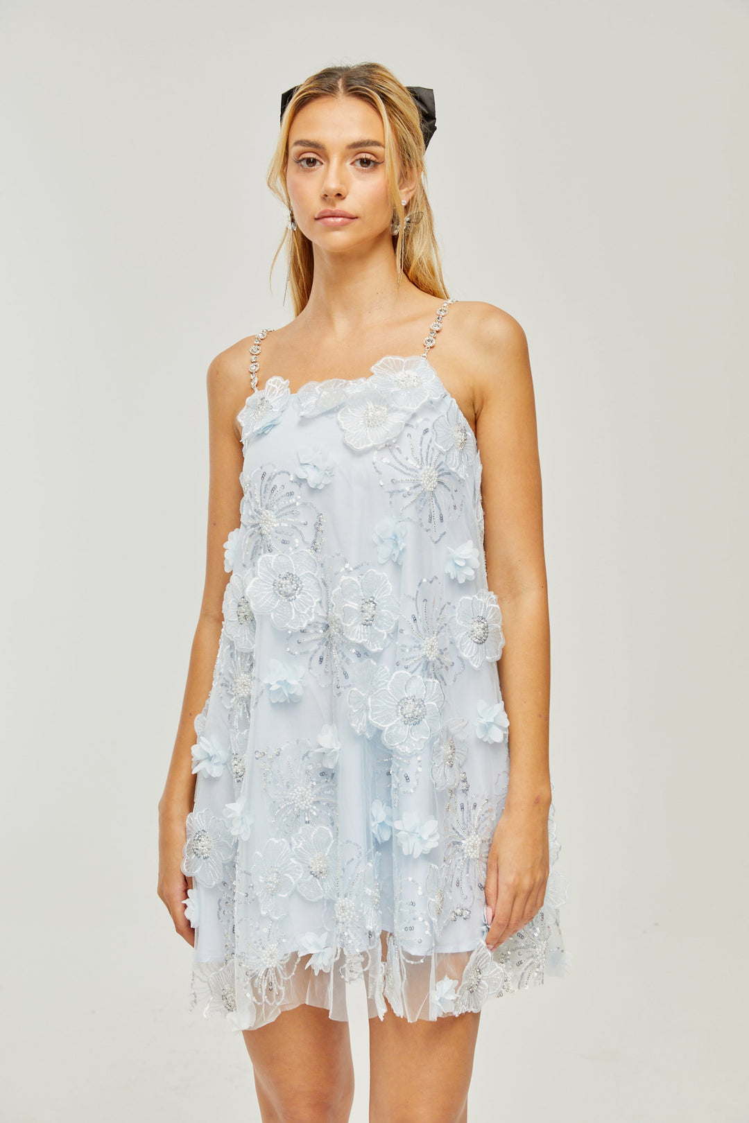 Suzette Kristal İşlemeli Çiçekli Mini Elbise
