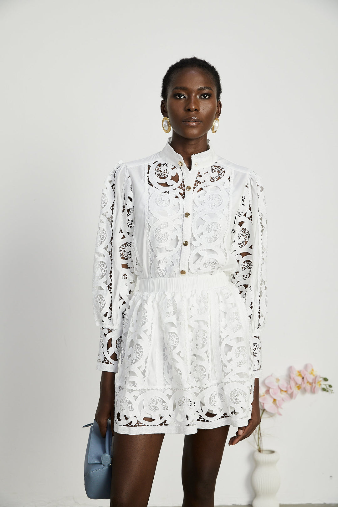 Marie Dantel Çiçek Süslemeli Gömlek Ve Etek Kombin Seti