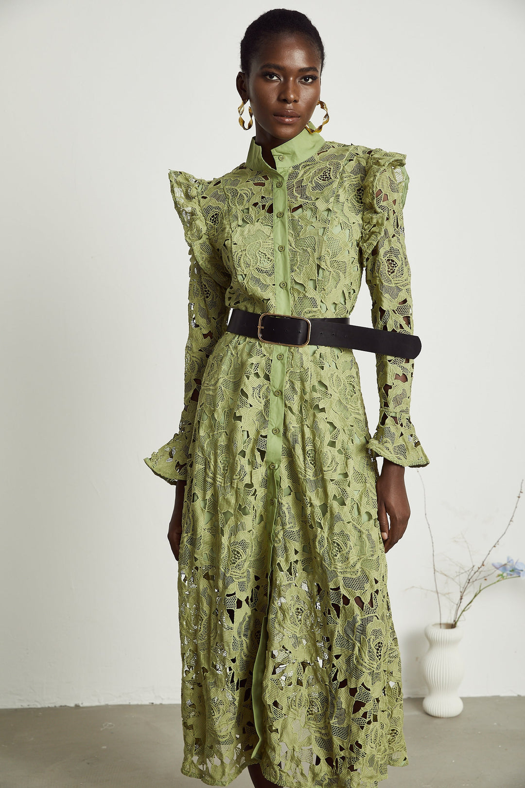Camille Kırmızı Kapaklı Dantelli Midi Elbise