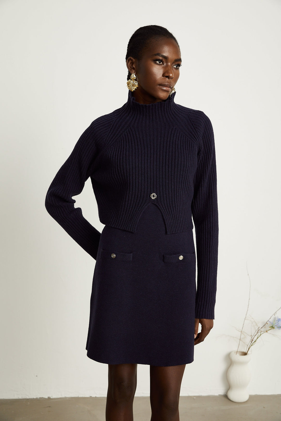 Clarisse Koyu Mavi Örgü Üst Ve Elbise Uyumlu Set