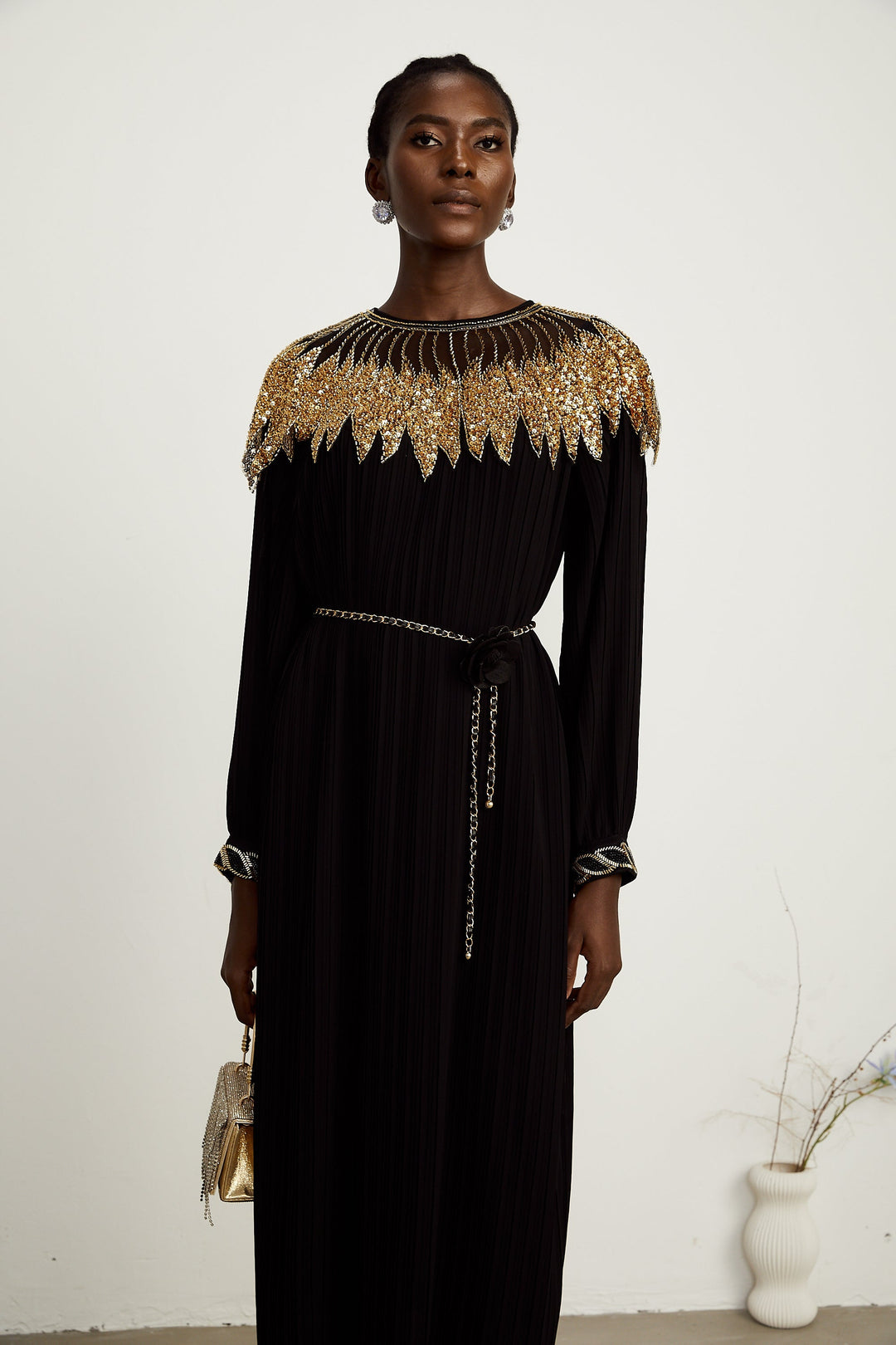 Charlotte Siyah Kısa Kollu Pullu Midi Elbise