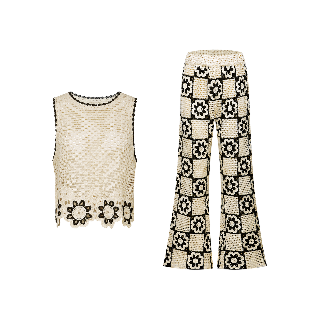 Léna Tığ İşi Çiçek Desenli Üst Ve Pantolon Kombin Seti
