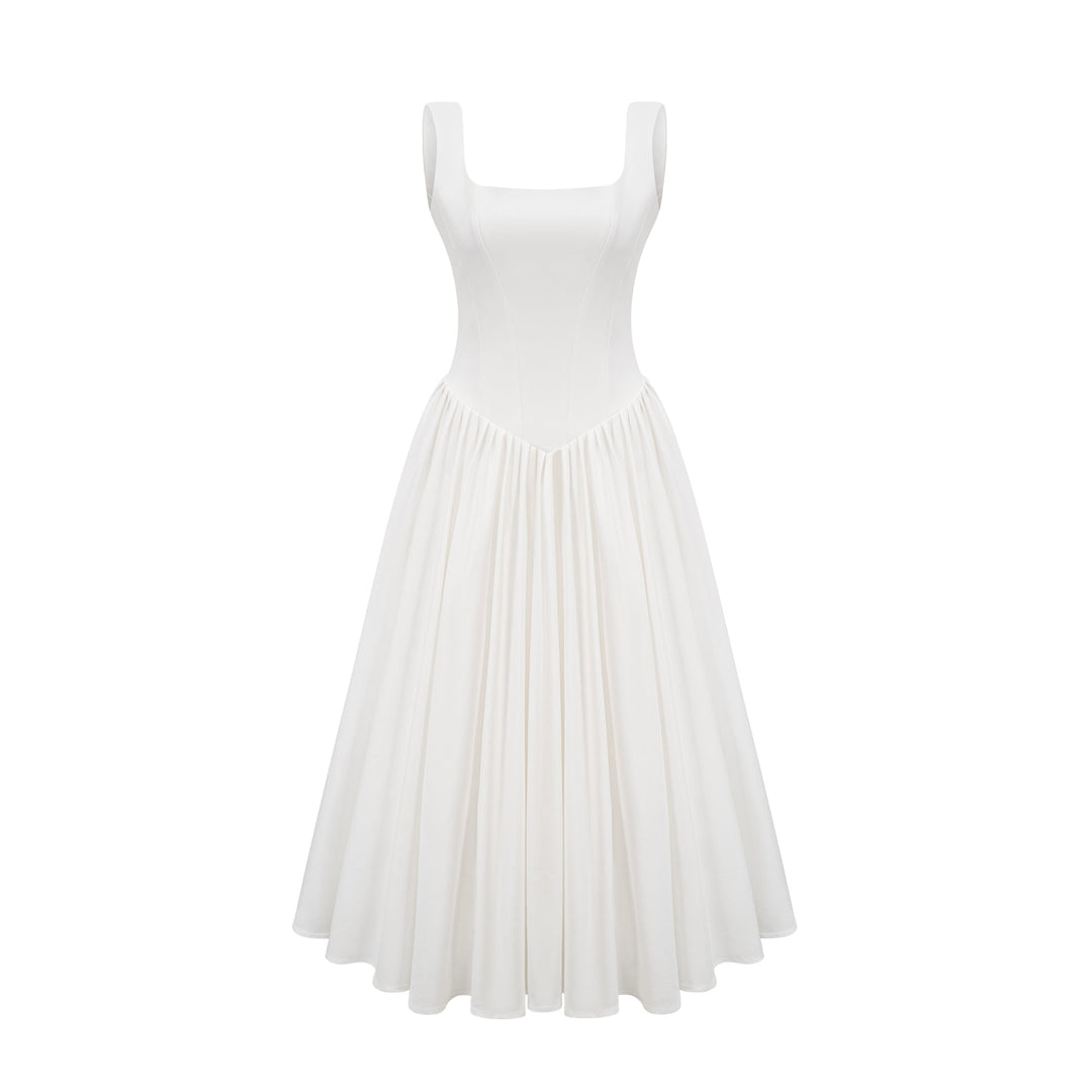 Blanche Beyaz İşlemeli Pileli Ceket Ve Elbise Uyumlu Takım