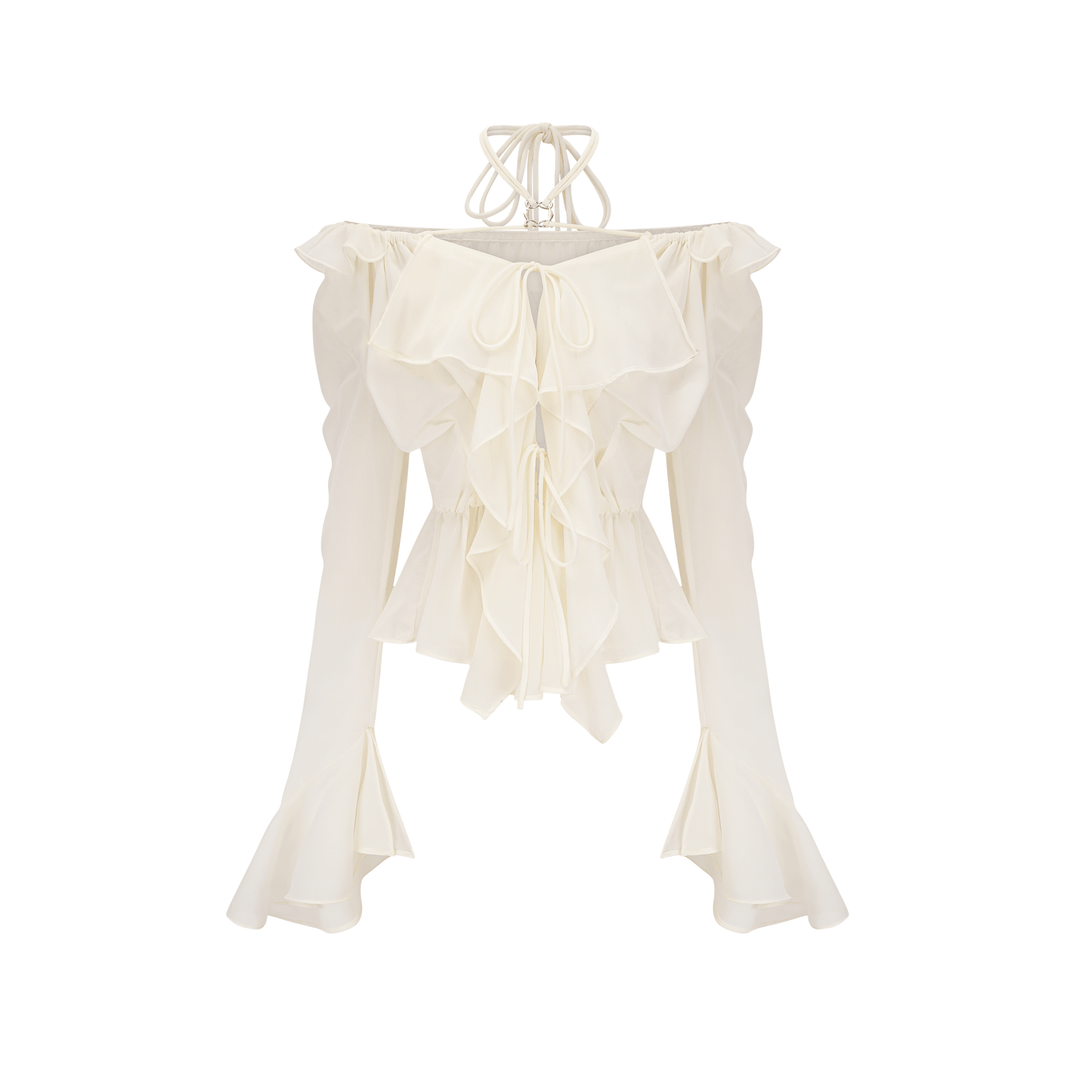Béatrix Beyaz Süslemeli Transparan Gömlek