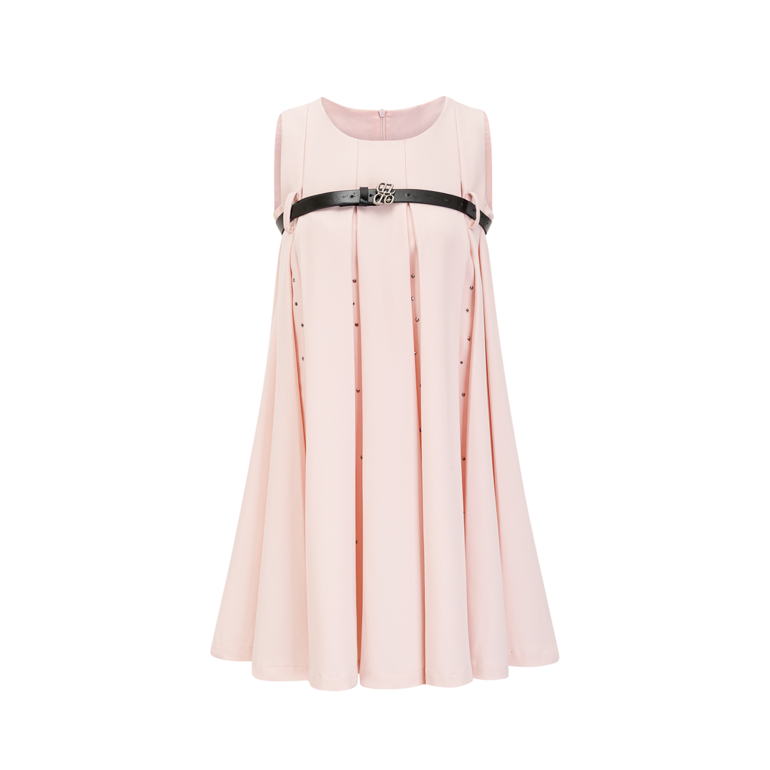 Cendrine Siyah Arkası Açık Pilili Midi Elbise