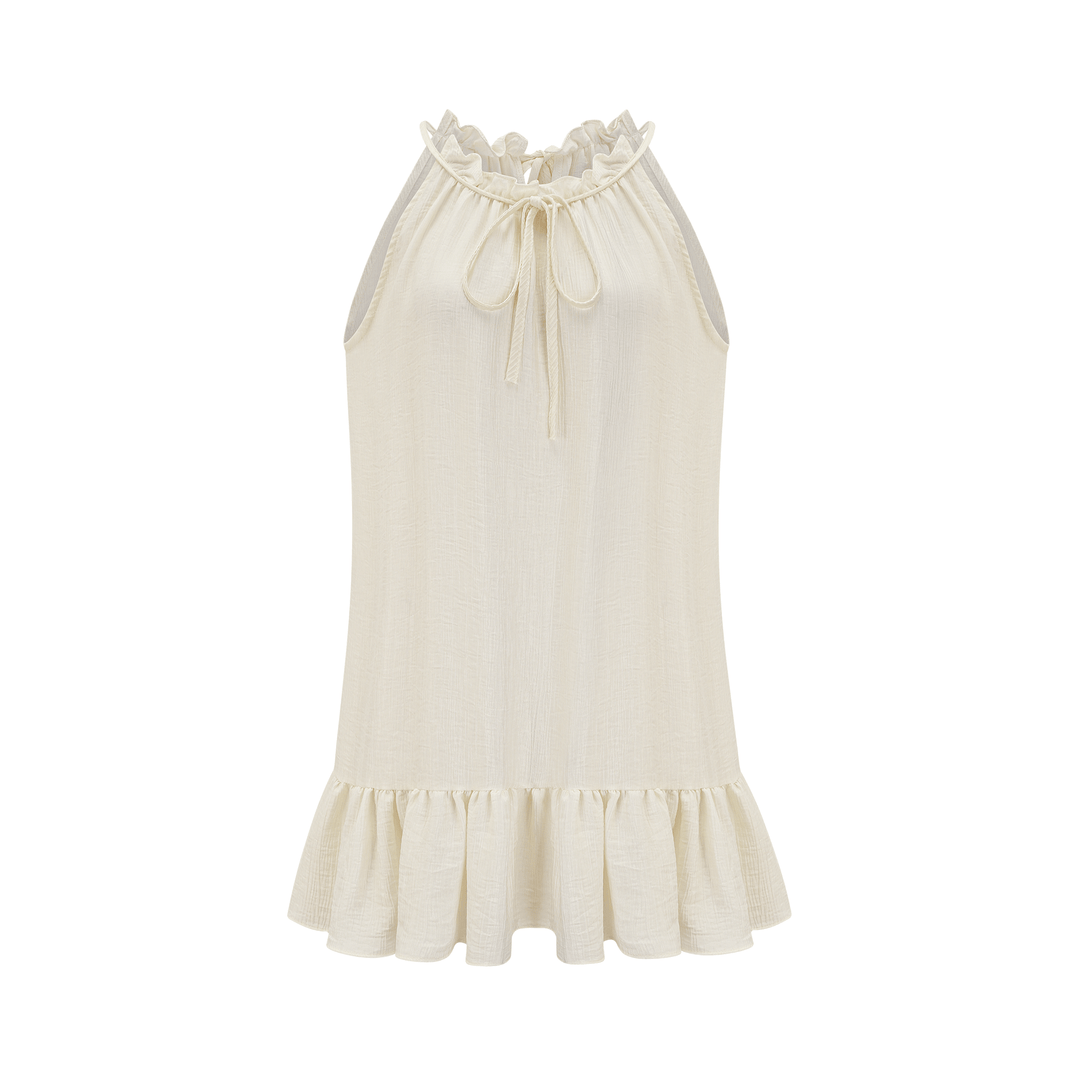 Kadife Çiçeği Beyazı Askılı Çiçek Etekli Elbise