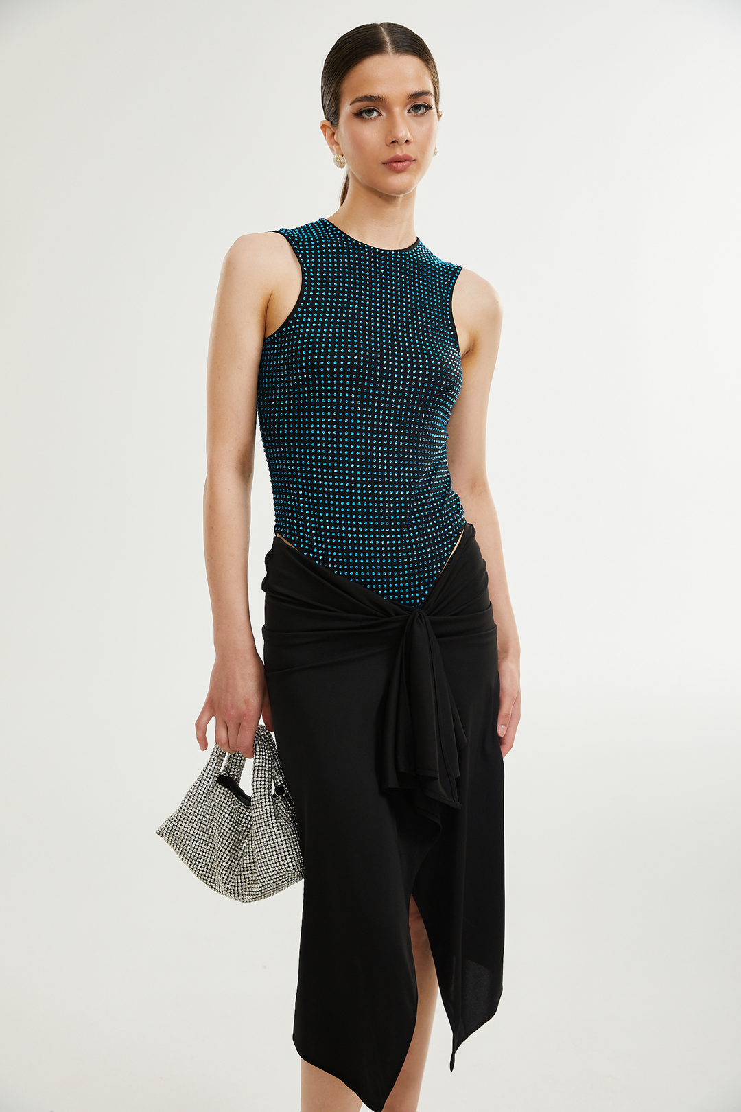Lourdes Fiyonk Detaylı Kristal Süslemeli Elbise