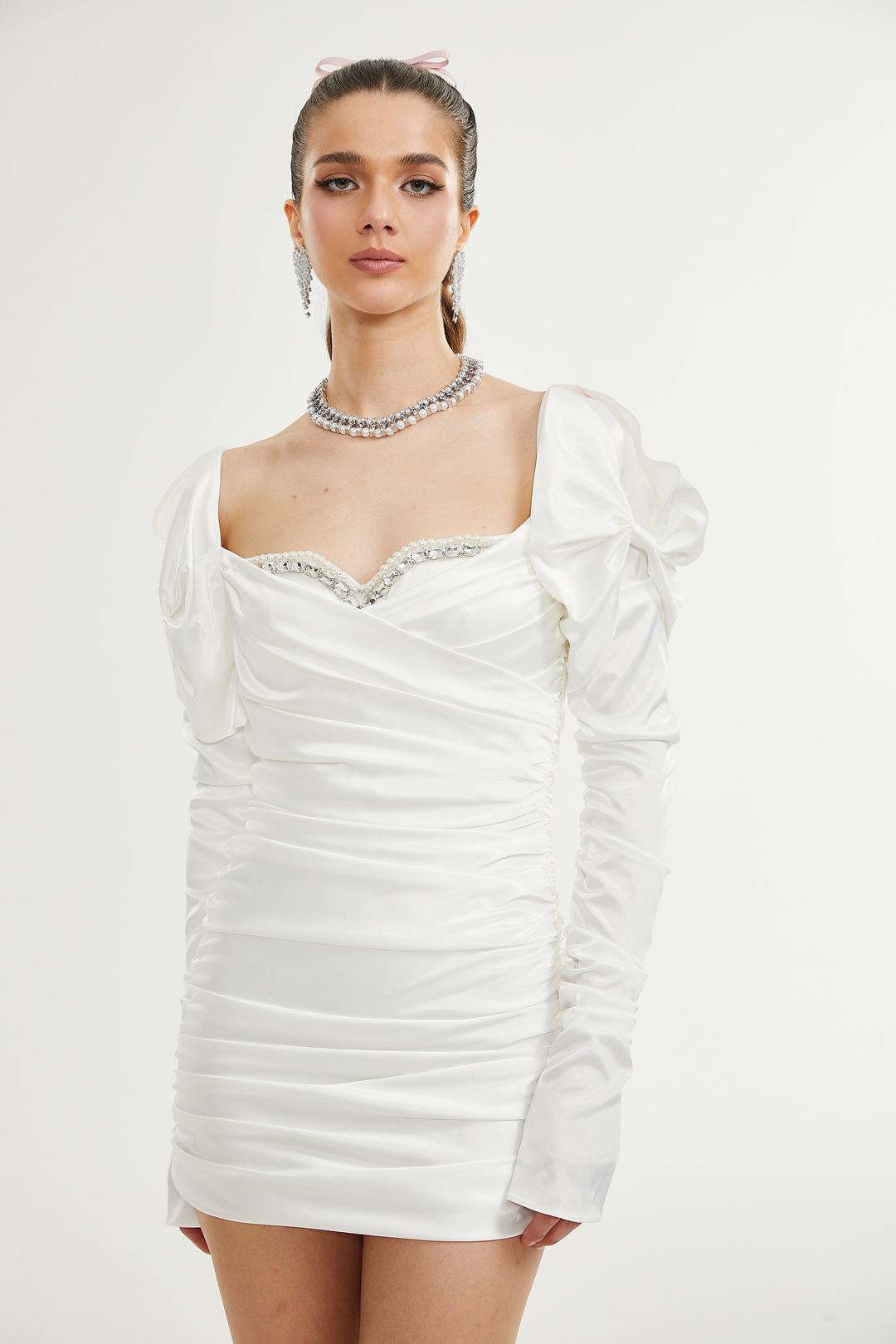 Stefania Payet İşlemeli Tüvit Mini Elbise
