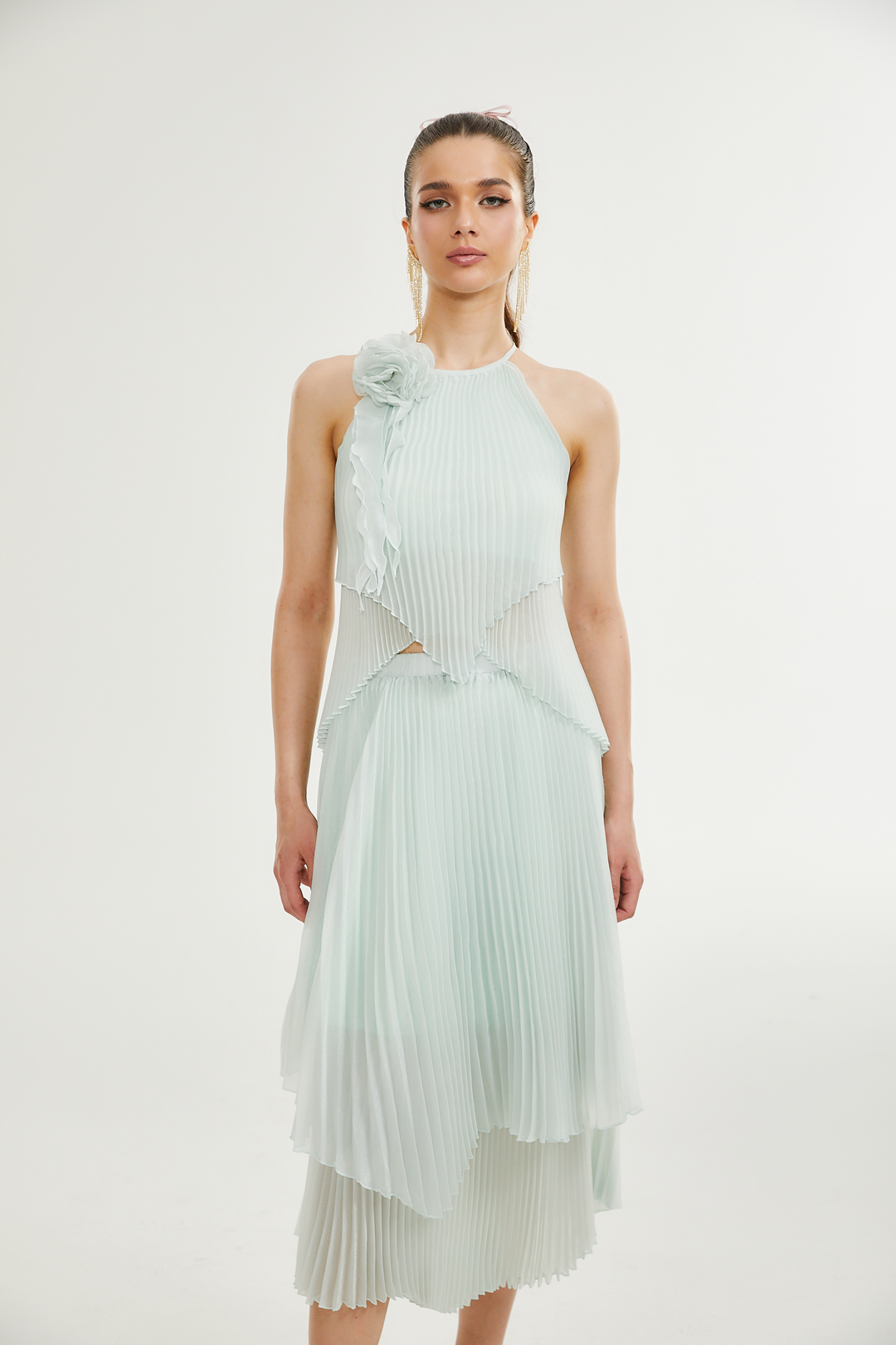 Fabrizia Suni Çiçek Pilili Üst Ve Etek Eşleştirme Seti