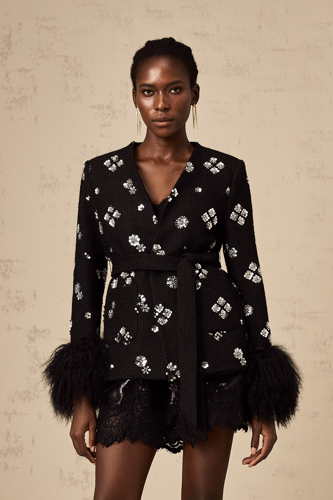Juliette Siyah İşlemeli Kuşaklı Ceket
