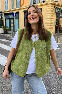 Kore'den ilham alan bir estetikle tasarlanan ve üstün konfor için yüksek kaliteli polyesterden üretilen Kısa Kollu Yeleğimizle tanışın. Bu yeleğin yuvarlak yakası, tek düğmeli kapaması ve pratik cepleri hem stil hem de işlevsellik sunar. Düz renk ve kısa kesim, onu rahat ve gündelik bir görünüm için çok yönlü bir parça haline getiriyor.