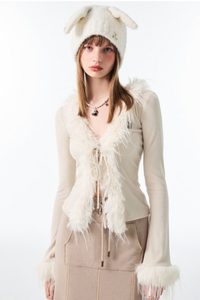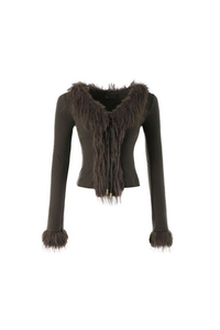 -Detaylar: Uzun kollu, V yaka, normal kalıp, yaka ve manşetlerde peluş detaylar