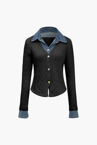 Örgü Denim Gömlek Yaka Uzun Kollu Üst