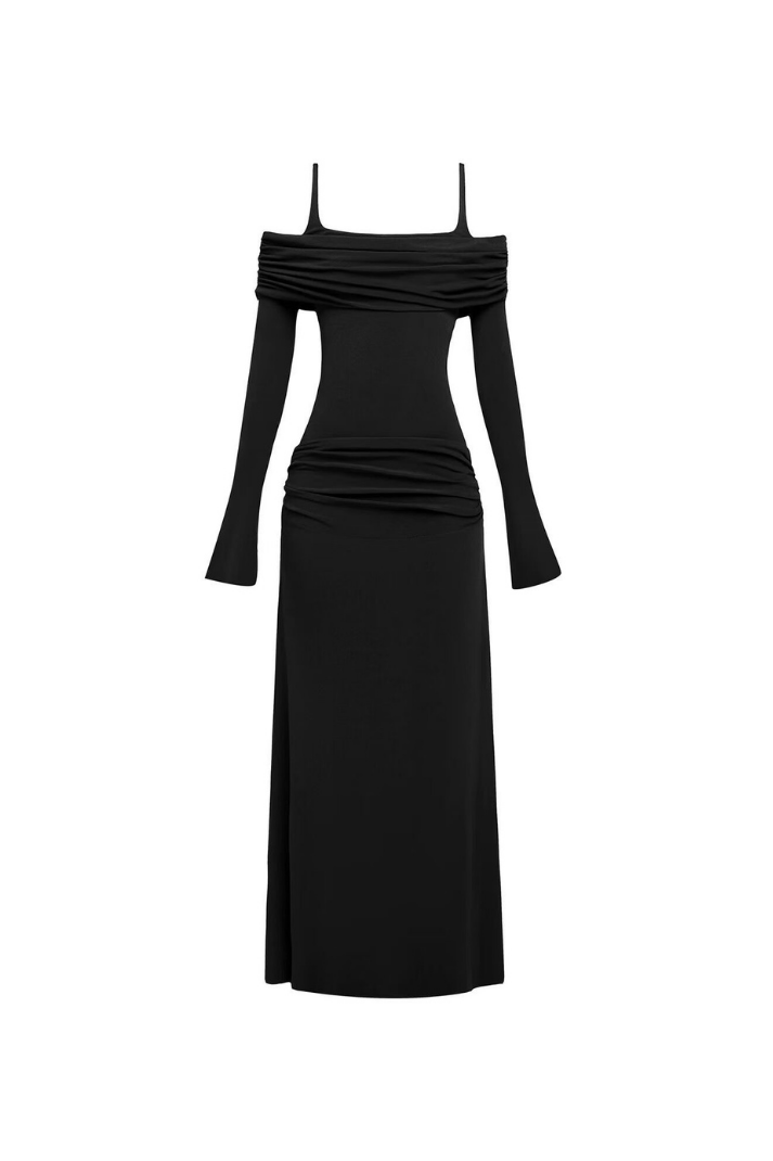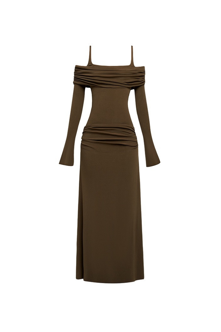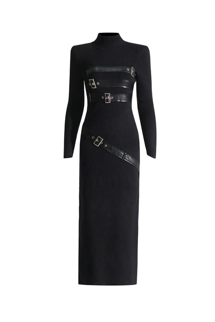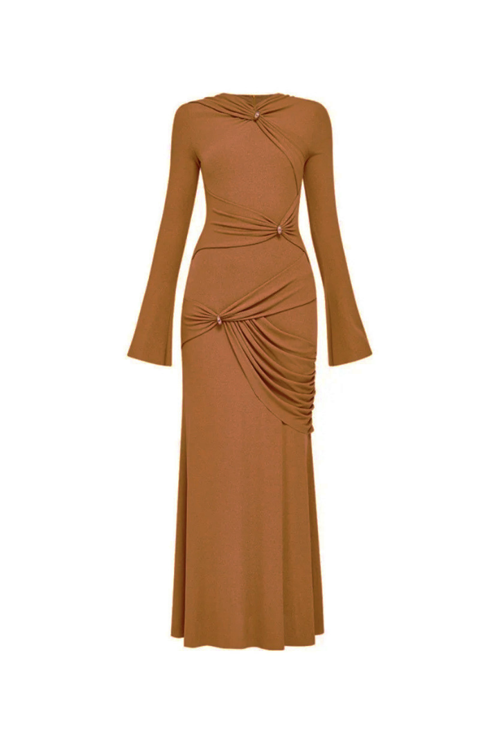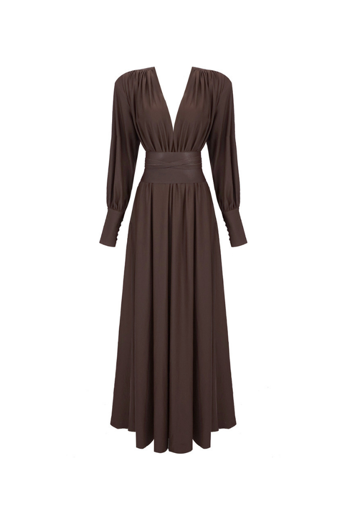 Ruby Deri Kemerli Vatkalı Uzun Elbise