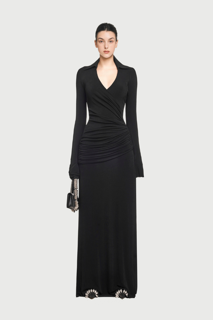 Sofia Uzun Kollu Gül Desenli Maxi Elbise