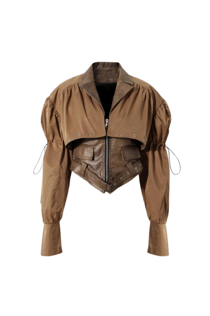 Minimalist Boxy Deri Kısa Ceket